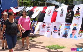 En la Avenida de Bolívar a Chávez, en Managua, desde el 28 de junio hasta el 19 de julio, se ubican los distintos emprendedores quienes están ofertando una variedad de productos alusivos, para la celebración del 45/19.