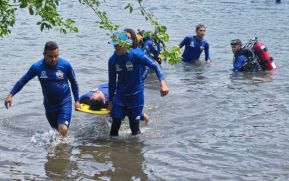 Efectivos de la Unidad de Rescate Acuático de los Bomberos Unidos llevaron a cabo este viernes prácticas de rescate en la laguna de Xiloá. Simularon rescatar a una persona que se estaba ahogando y extraer de las aguas un cuerpo de una persona.