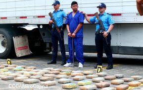 Gracias a la Estrategia del Muro de Contención que ejecuta la Policía Nacional en contra del narcotráfico internacional y crimen organizado, se logró incautar 120.173 kilogramos de cocaína en el puesto fronterizo El Guasaule, municipio de Somotillo.