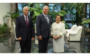 En el Palacio de la Revolución, en La Habana, este 11 de Junio, el Presidente de la República de Cuba, Miguel Díaz-Canel Bermúdez, acompañado del Ministro interino de Relaciones Exteriores, Gerardo Peñalver.
