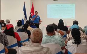 El INTA desarrolló una conferencia sobre el Manejo de la vaca caída después del parto, en el Auditorio María Castil, con la participación de productores de Managua, Rivas y Carazo de manera presencial y virtual a través de los telecentros.