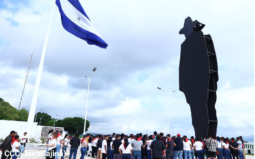 En el marco del 129 aniversario de su natalicio, la Juventud Sandinista colocó Ofrenda Floral al General de Hombres y Mujeres Libres Augusto C. Sandino, en su monumento en la Loma de Tiscapa, Managua.