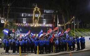 Una diana vehicular en la que se trasladaron miembros de la militancia sandinista y agentes de la Policía Nacional, recorrió las calles del distrito V de Managua este sábado en saludo al natalicio 129 del General Augusto C. Sandino.