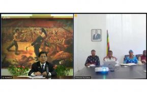 El Canciller Denis Moncada Colindres, recibió las Copias de Estilo del Hermano Paul Chikawa, que lo acreditan oficialmente como Embajador de la República de Zimbabwe ante el Pueblo y Gobierno de Nicaragua, concurrente desde Cuba.