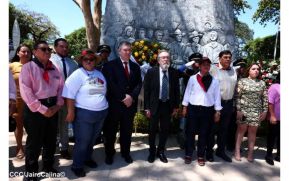 El Grupo Parlamentario de Amistad Nicaragua-México y la Embajada de México en Nicaragua, representada por el Sr. Embajador Guillermo Zamora y Villa, en el Monumento de los Héroes de la Patria.