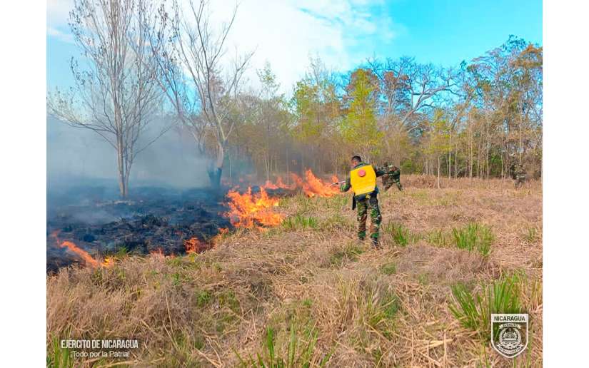 El Ejército de Nicaragua consecuente con el lema de que “Somos el Pueblo mismo uniformado trabajando en su propio beneficio”, el 19 de febrero de 2024, a través del 5 Comando Militar Regional, participó en sofocación de incendio forestal.