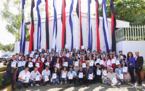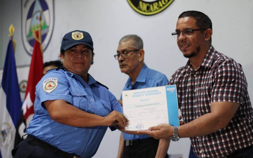 Hombres y mujeres de las diferentes direcciones del Ministerio del Interior (MINT) recibieron su certificado tras haber concluido satisfactoriamente los cursos de Ofimática y Electricidad y Medición.