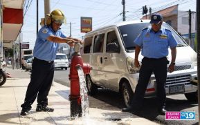 Bomberos Unidos de Nicaragua inspeccionó hidrantes ubicados en Ciudad Jardín, en Managua, una zona comercial donde se ubica el Mercado Oriental, el más grande de Centroamérica.