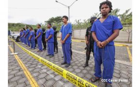 La Policía Nacional presentó este martes a 9 delincuentes presos por los delitos de asesinato, crimen organizado, tráfico de droga y armas en la Comunidad La Fe, Laguna de Perlas, Región Autónoma de la Costa Caribe Sur (RACCS).