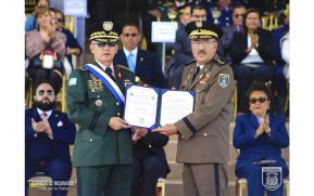Durante el Acto de Conmemoración realizado en el Campo de Parada “Marte” del Ejército de Honduras, el Inspector General del Ejército de Nicaragua, Coronel General Marvin Elías Corrales Rodríguez.