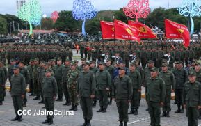 Las Fuerzas Armadas junto a su cadena de mando y diversos componentes militares realizaron en Plaza La Fe, un ejercicio práctico en el marco del acto central del 46 aniversario.