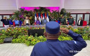 Al concluir el acto conmemorativo por el 45 aniversario de fundación de la Fuerza Naval, la Compañera Rosario Murillo, Copresidenta de la República, subrayó que el pueblo nicaragüense quiere, demanda y exige avanzar en paz.