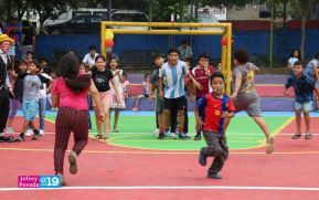 Servidores públicos del Ministerio de Gobernación celebraron con niños y niñas el Día de la Alegría desde el barrio Pablo Úbeda, ubicado en el distrito cinco de Managua.