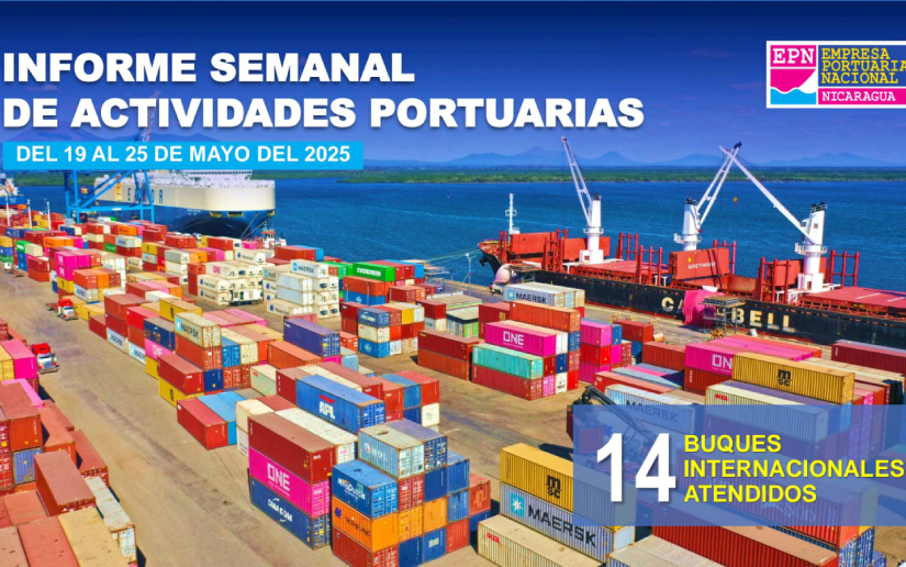 Un total de 92 mil 650 toneladas métricas de mercaderías ingresaron a Nicaragua a través de 14 buques internacionales que atracaron en los puertos de los litorales Atlántico y Pacífico entre el período del 19 al 25 de mayo.