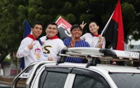 En conmemoración del Día de la Dignidad Nacional, familias del distrito seis de Managua, junto a miembros de la Policía Nacional y militantes sandinistas.