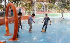 Decenas de niños y niñas disfrutaron de la zona acuática del parque Luis Alfonso Velásquez Flores, un lugar que en esta Semana Santa es seleccionado por las familias para la diversión y sana recreación.