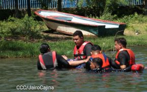 Los Bomberos Unidos desarrollaron este miércoles un ejercicio demostrativo de rescate de víctimas en aguas mansas y turbulentas, adquiridos durante cursos de capacitación.