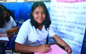 En el municipio La Concepción de Masaya, reside la joven María Esther Cerda Membreño de 19 años, todos los días trabaja en el negocio familiar de sus padres, sin embargo eso no le ha impedido estudiar su secundaria.