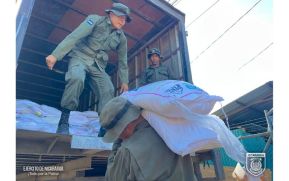 Ejército de Nicaragua en coordinación con el Ministerio de Educación (MINED), participó en el descargue de 1, 228 quintales de alimentos los que posteriormente serán distribuidos en 12 escuelas del área urbana de Siuna.