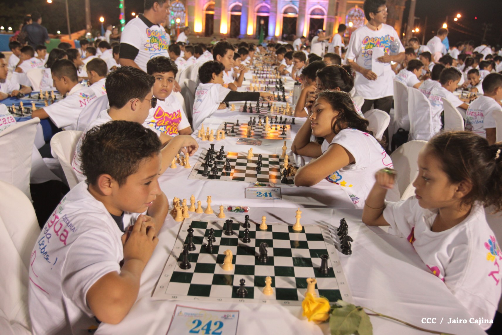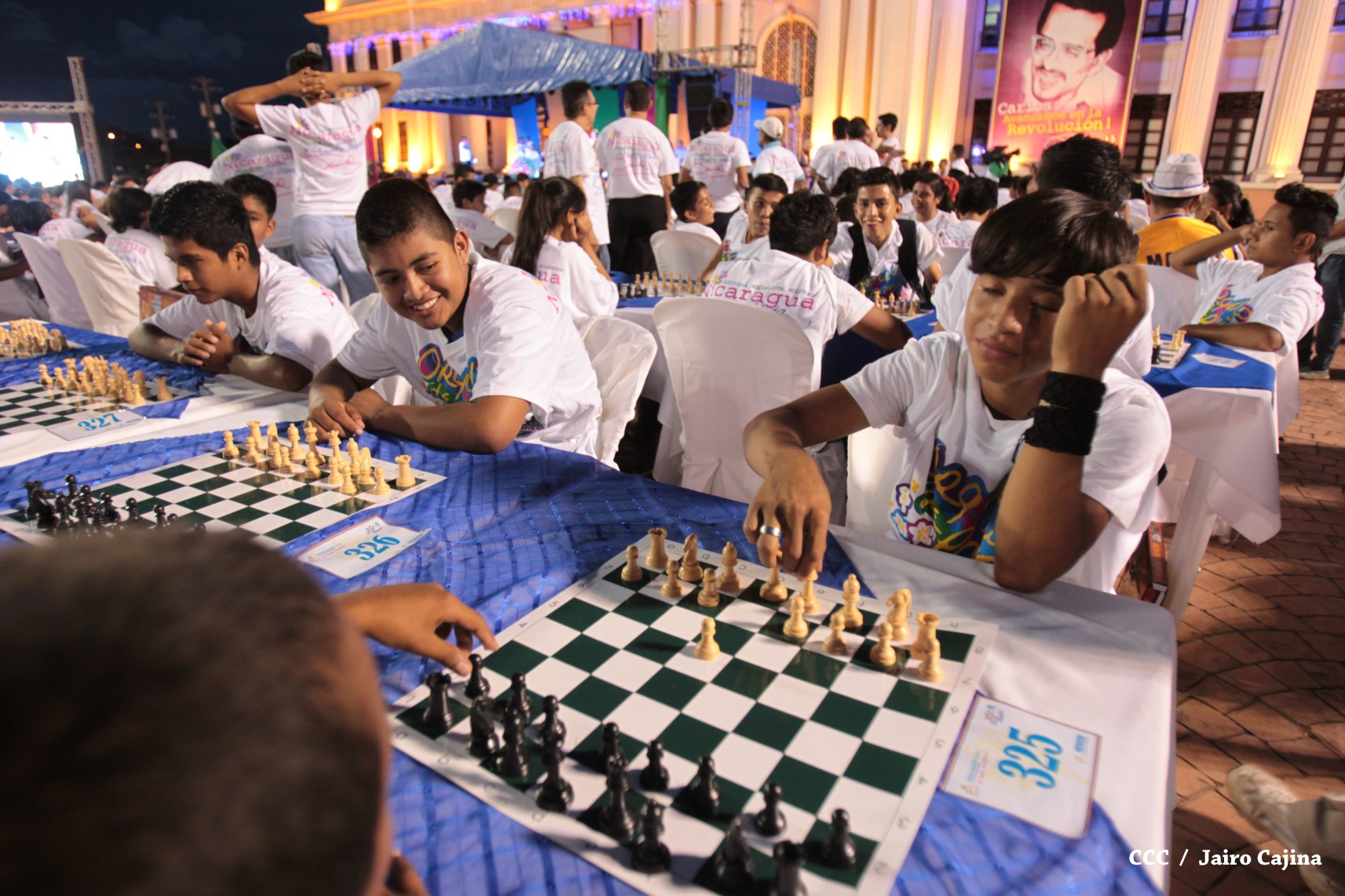 Más de mil jóvenes de distintos municipios del país se han dado cita la tarde de este viernes para conmemorar el 39 aniversario del tránsito a la inmortalidad del Comandante en Jefe de la Revolución, Carlos Fonseca Amador, demostrando sus habilidades y destrezas mentales en el primer Torneo Mega Simultáneo de Ajedrez.