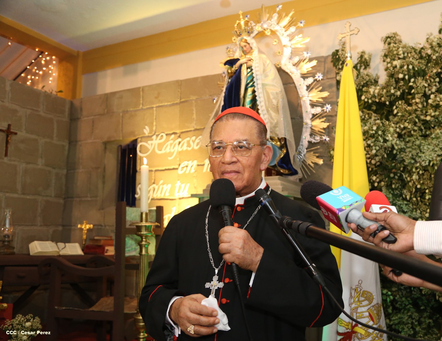 Con mucha fe y devoción, miles de capitalinos se dieron cita en las instalaciones de Radio Estrella del Mar ubicada en las Sierritas de Managua y junto a Su Eminencia, Cardenal Miguel Obando y Bravo, rezaron el último día del novenario en honor a la Santísima Virgen María, seguido del tradicional grito de: “¿Quién Causa Tanta Alegría? ¡La Concepción de María!”.
