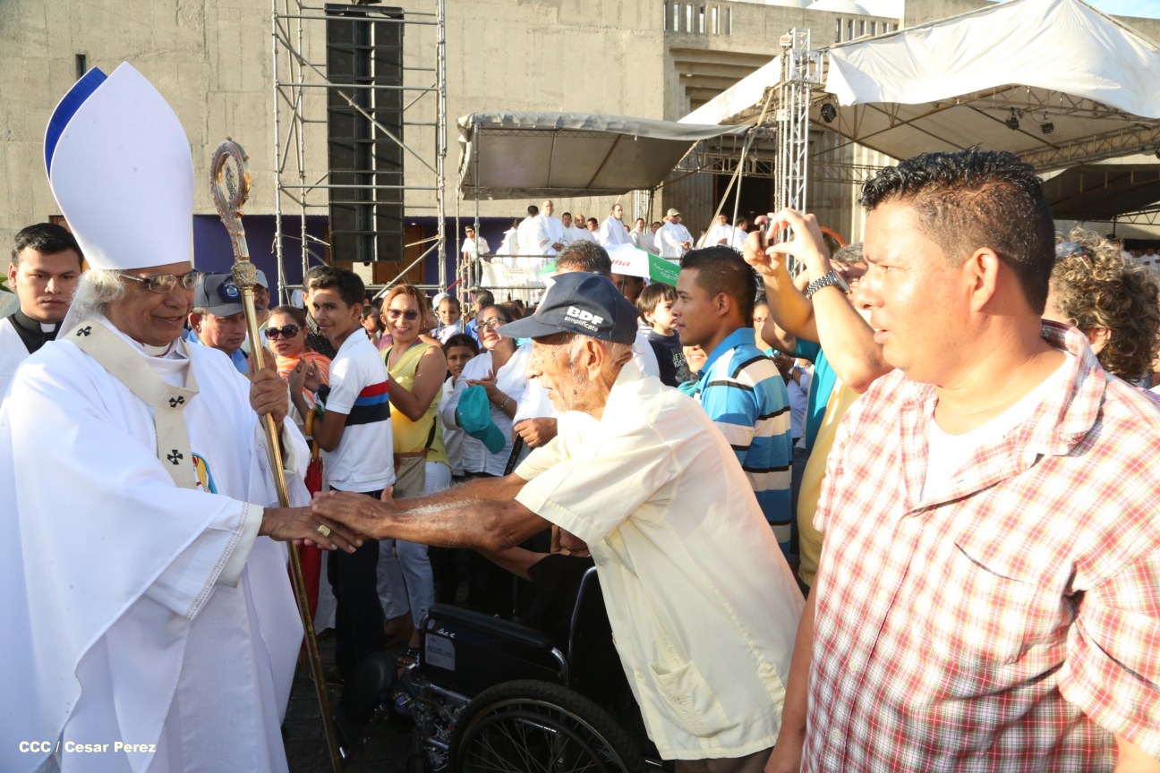 Miles de nicaragüenses católicos de todos los rincones del país, coparon los patios y el atrio de la Catedral Metropolitana de Managua para participar de la primer misa del 2016, que fue presidida por Su Eminencia Reverendísima Cardenal José Leopoldo Brenes, el obispo auxiliar Silvio Báez y el todo el clero de la Arquidiócesis.
