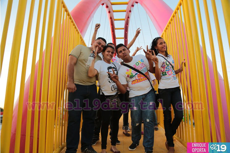 Autoridades de la Alcaldía de Managua, juventud y familias de los barrios cercanos al Paso a Desnivel "Barricada de la Esperanza", en el Distrito VI de Managua, inauguraron el Puente Peatonal homónimo, que facilitará el tráfico peatonal en la zona.