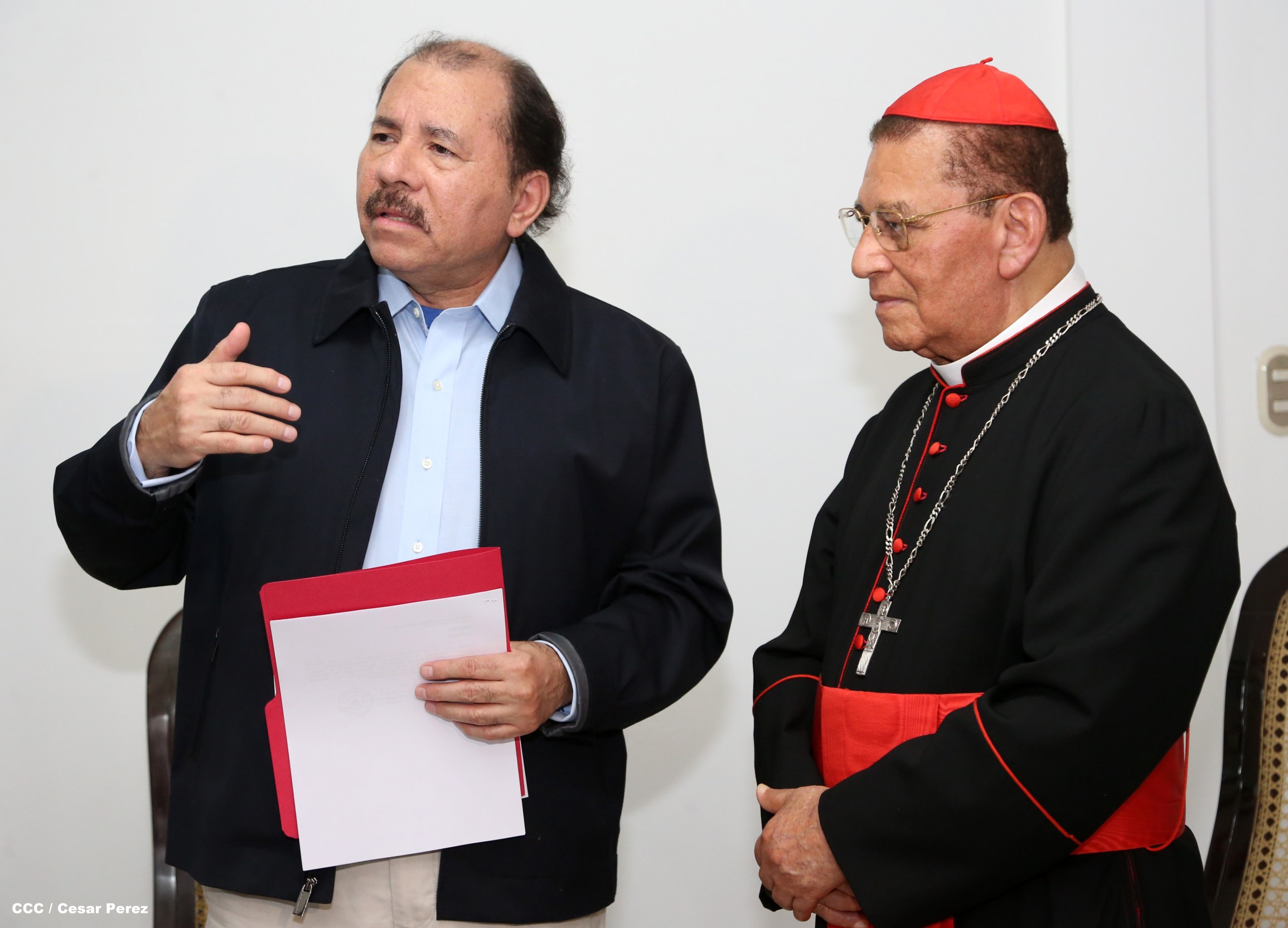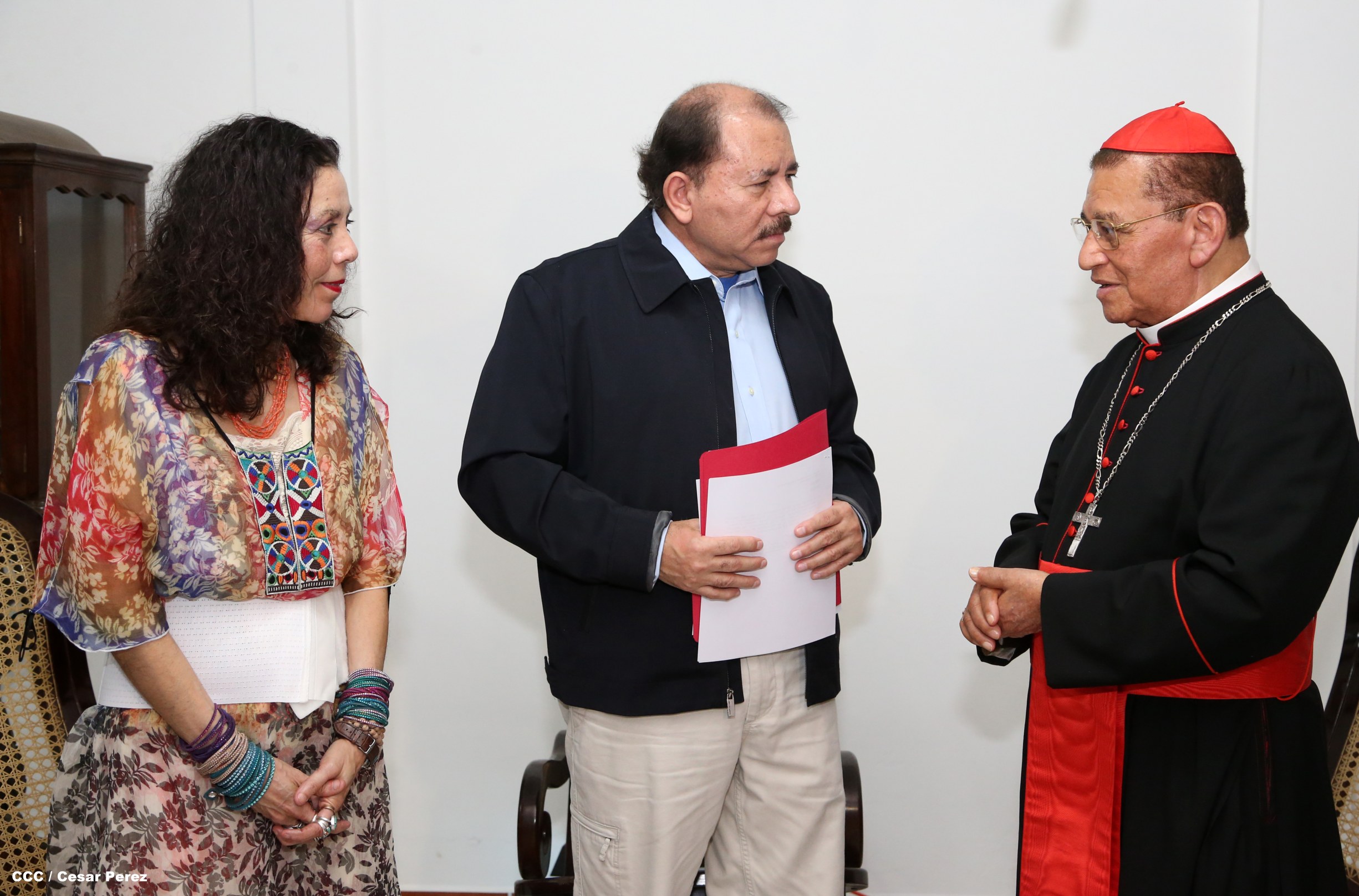 El Presidente de la República, Comandante Daniel Ortega, y la Coordinadora del Consejo de Comunicación, Compañera Rosario Murillo, visitaron a Su Eminencia Reverendísima, Cardenal Miguel Obando y Bravo, para saludarlo en ocasión de 90 Aniversario Natal.