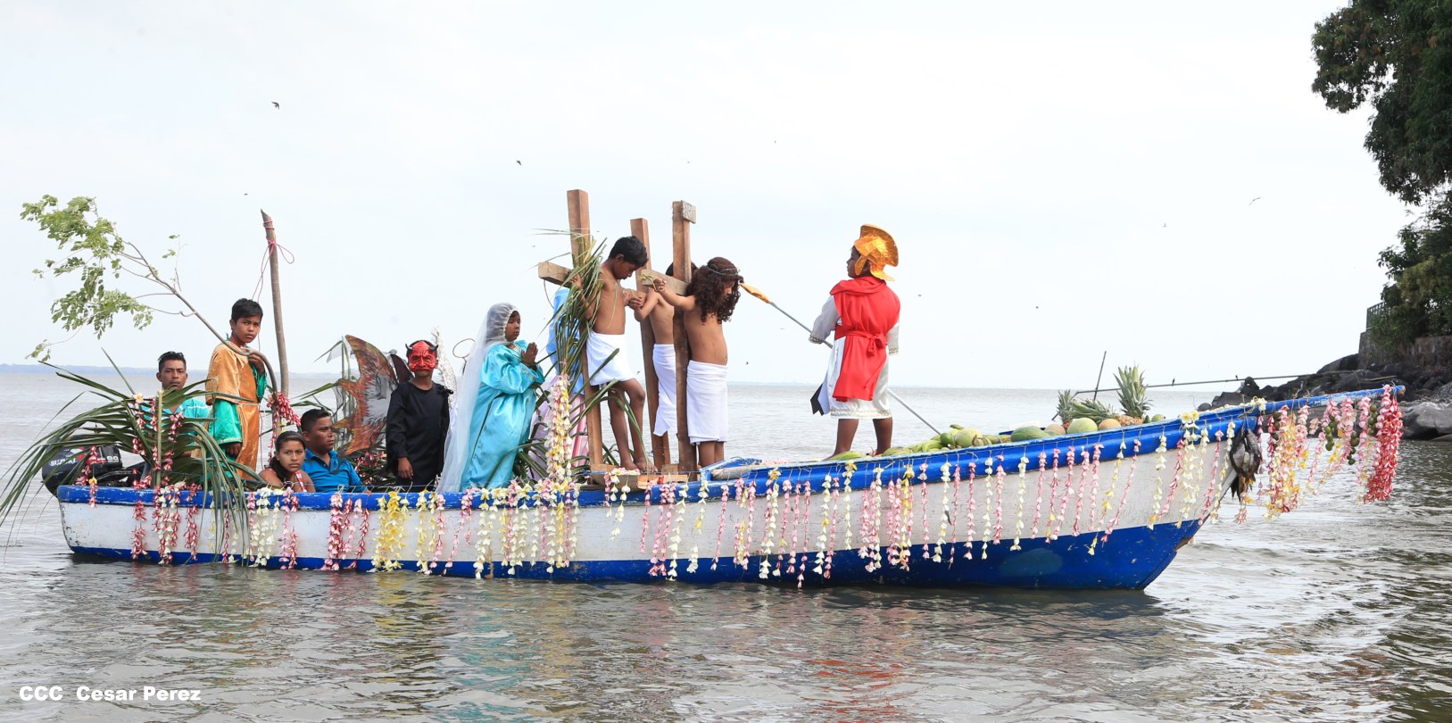 Celebran con fe y devoción católica el Viacrucis Acuático en el Lago Cocibolca.