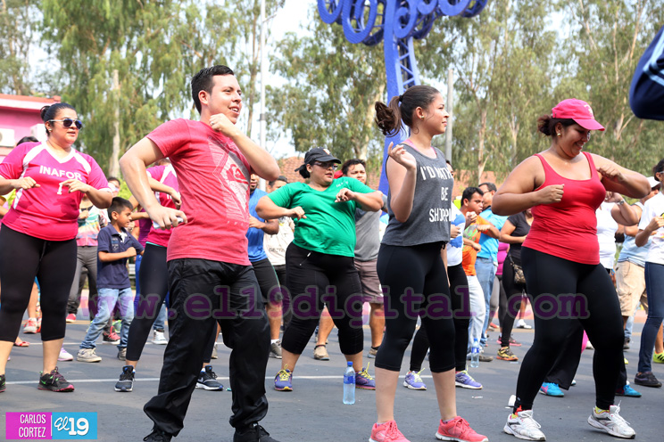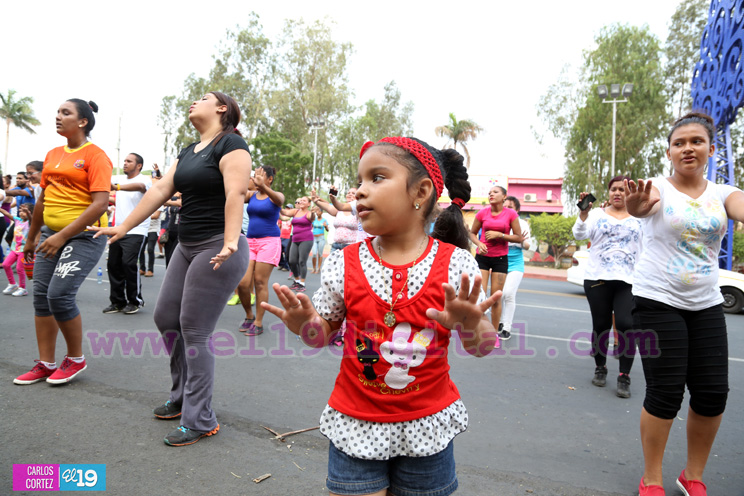 Zumbatón en la Avenida de Bolívar a Chávez, en Managua, como parte de las Mañanas Deportivas.