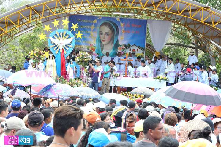 Miles de fieles católicos de todo el país peregrinaron este domingo al Santuario Nacional de la Virgen de Cuapa en Chontales, para conmemorar el 36 aniversario de sus apariciones.