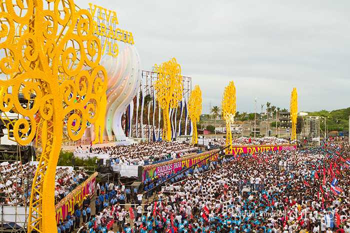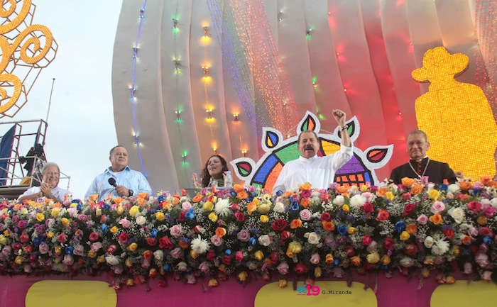 El Comandante-Presidente Daniel Ortega y la Compañera Rosario Murillo presiden el acto por el 34 Aniversario de la Revolución Sandinista.