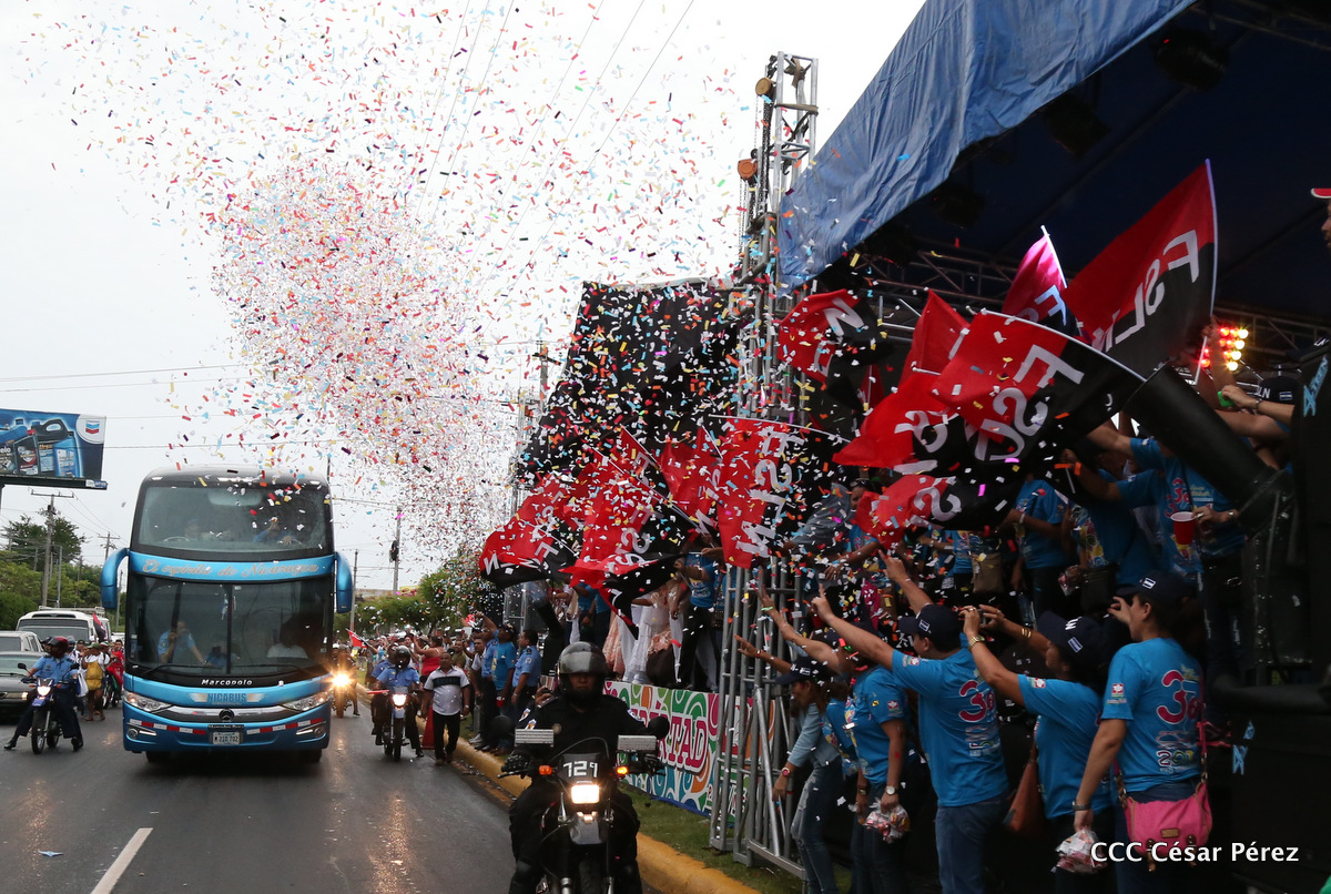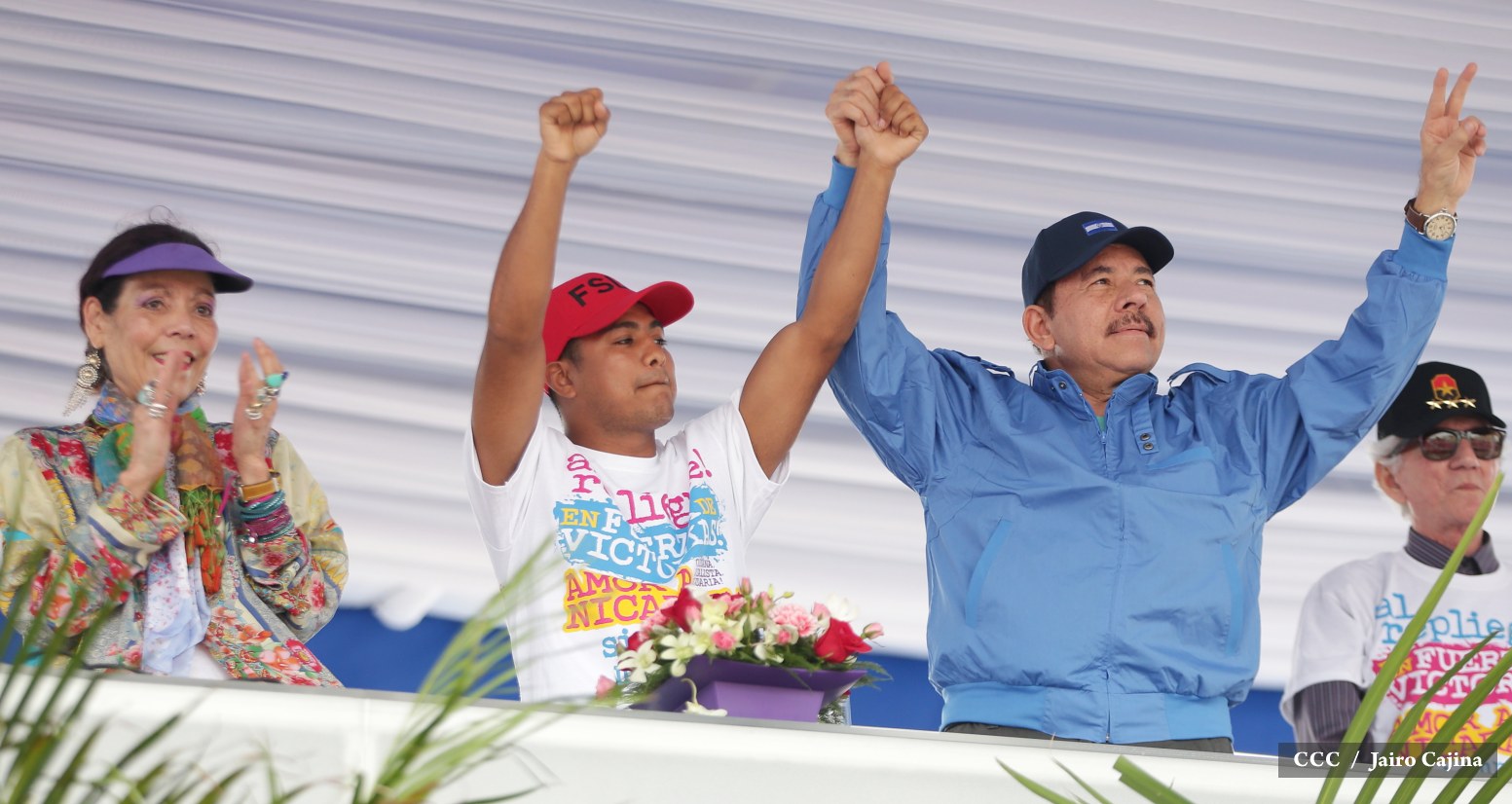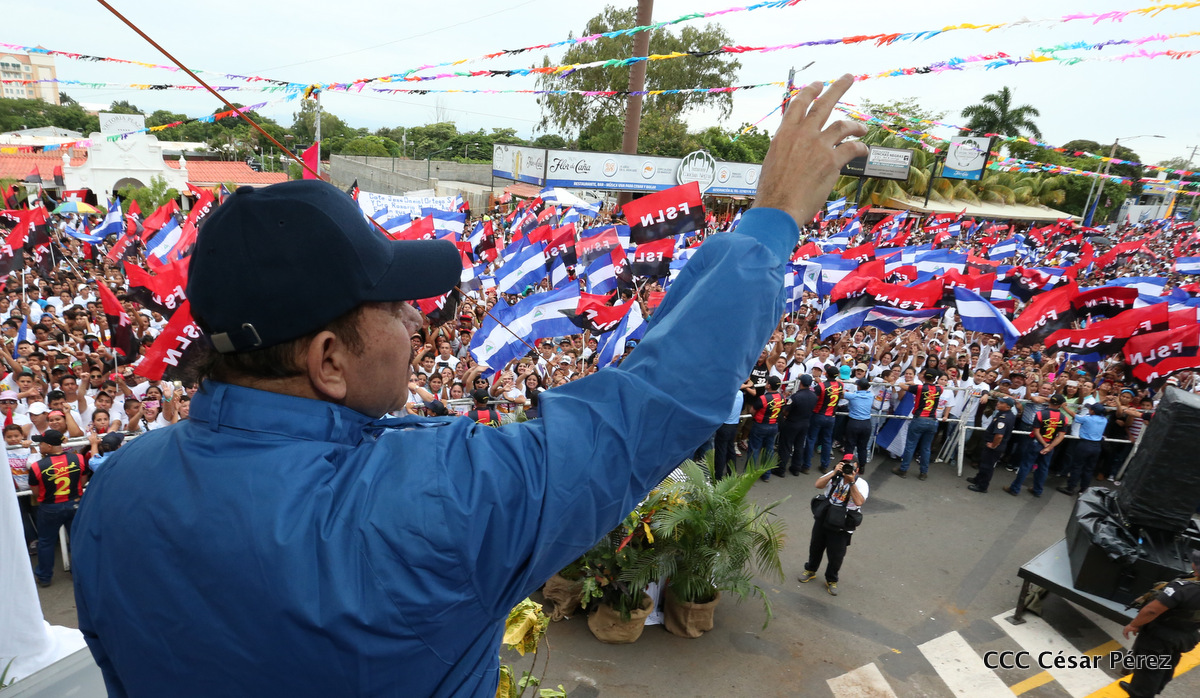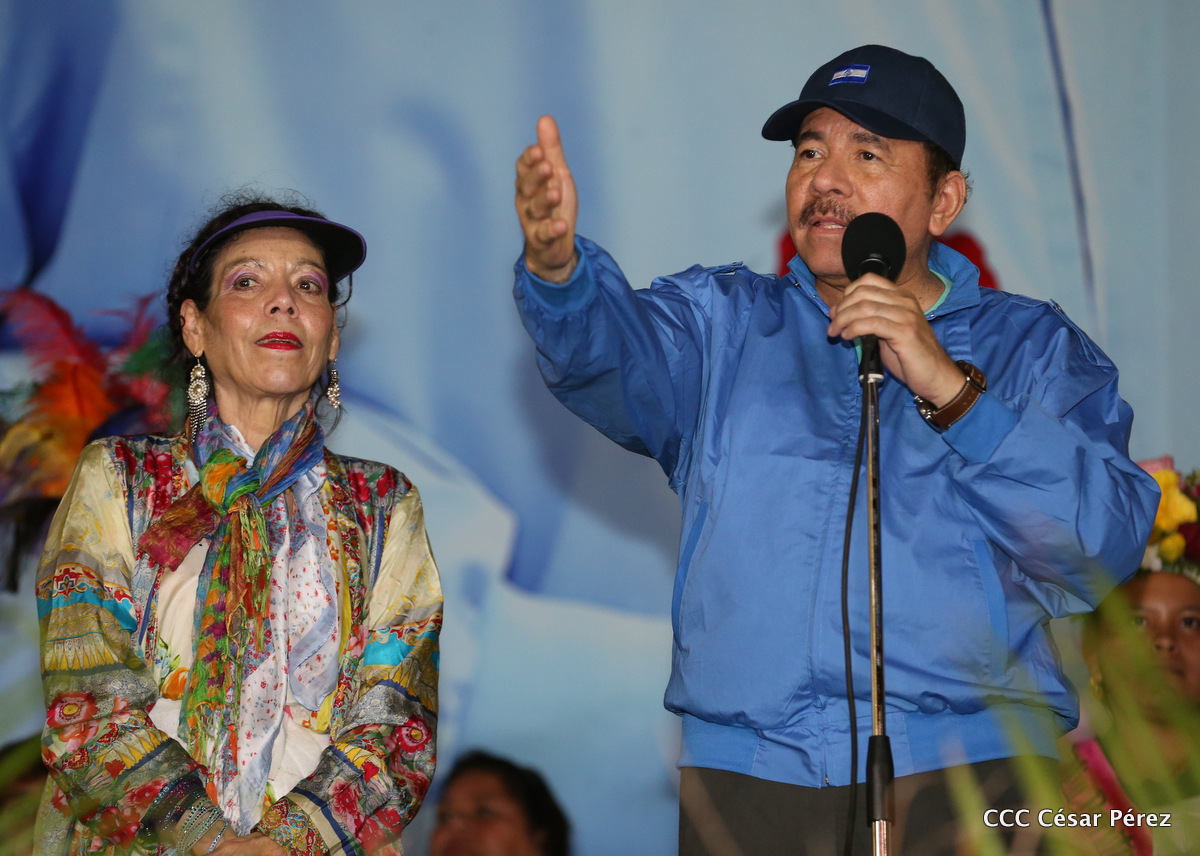 El Presidente de la República, Comandante Daniel Ortega, y la Compañera Rosario Murillo, Coordinadora del Consejo de Comunicación y Ciudadanía, celebran junto a miles de nicaragüenses, el Pueblo-Presidente, la 37 reedición del Repliegue Táctico a Masaya.