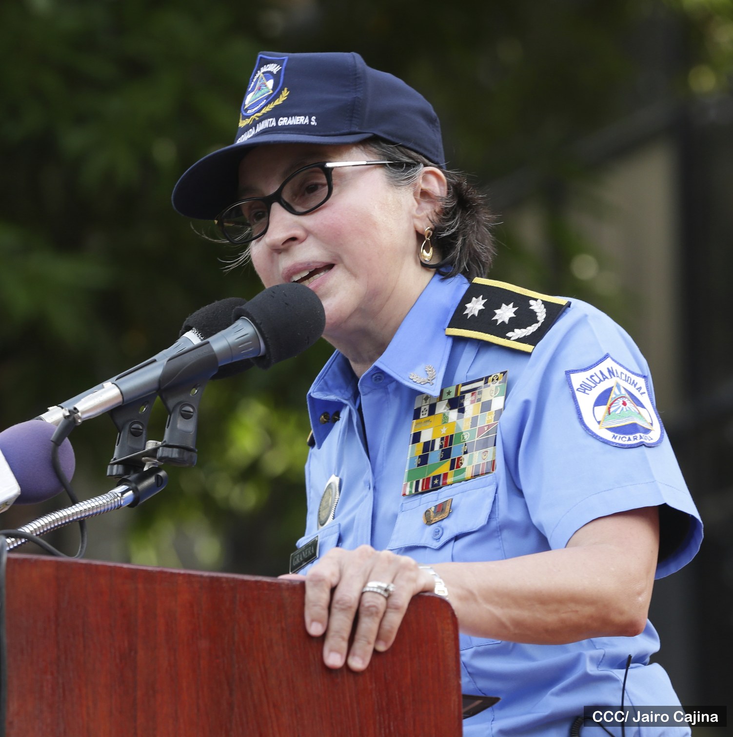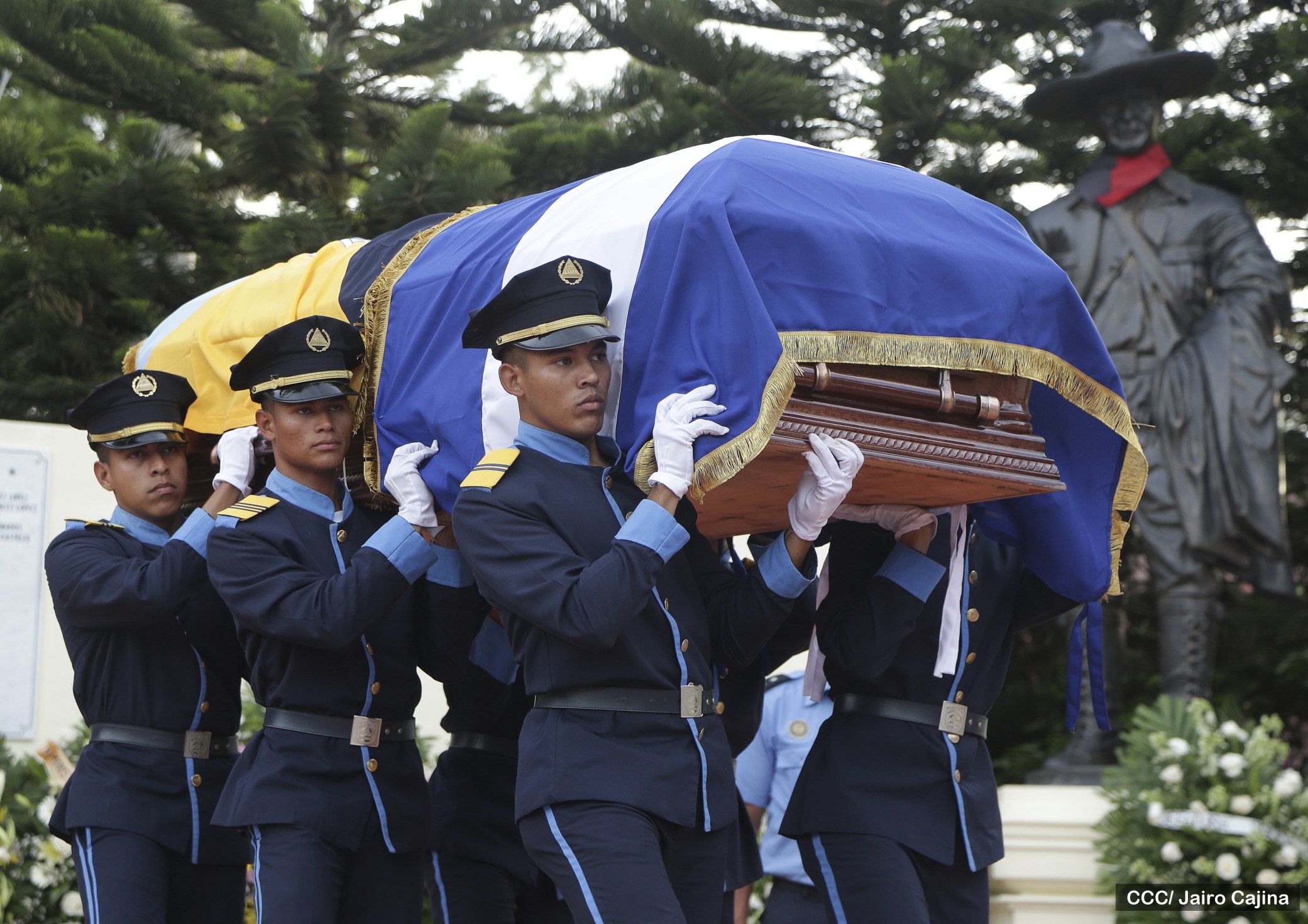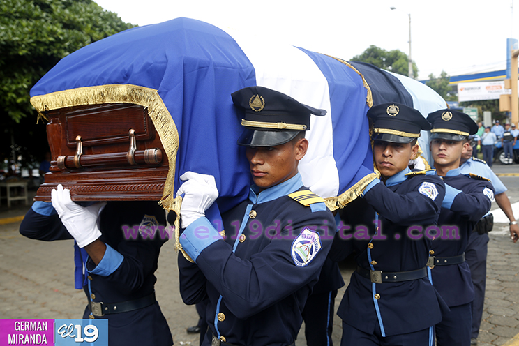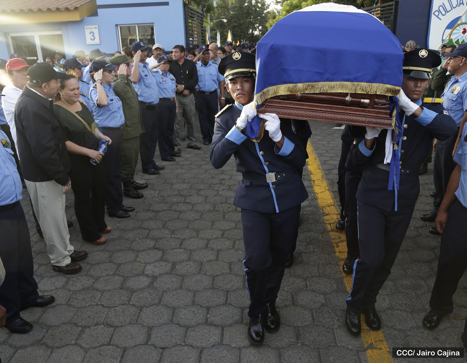 El Presidente de la República y Jefe Supremo de la Policía Nacional, Comandante Daniel Ortega Saavedra, la Primera Comisionada Aminta Granera, y la jefatura de esa institución rindieron homenaje póstumo al Comisionado Buenaventura Miranda Fitoria, jefe policial de Boaco, quien fue asesinado este miércoles por la noche.