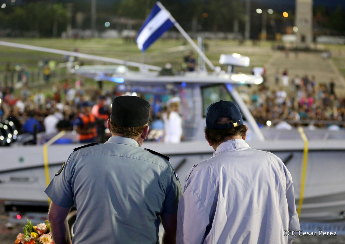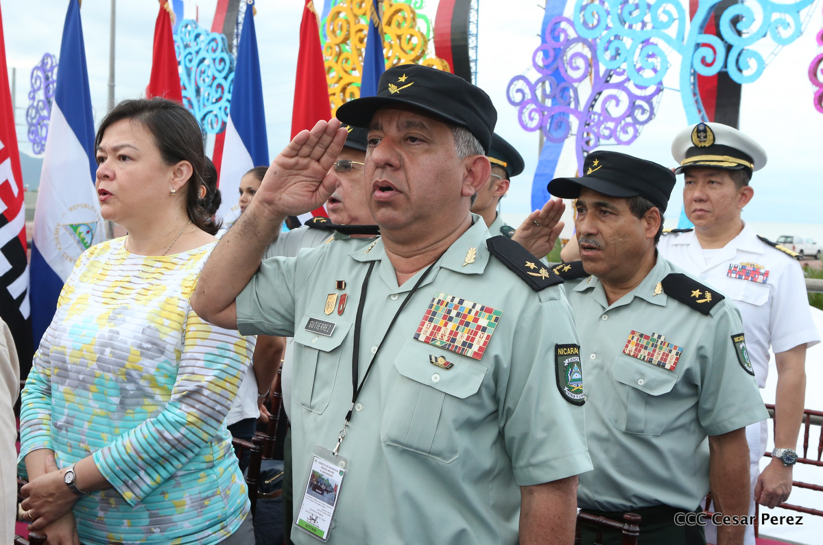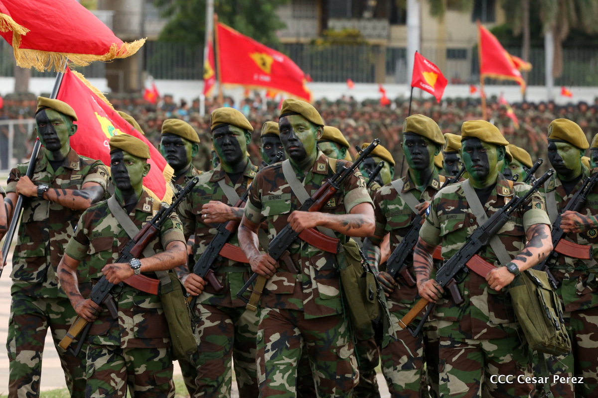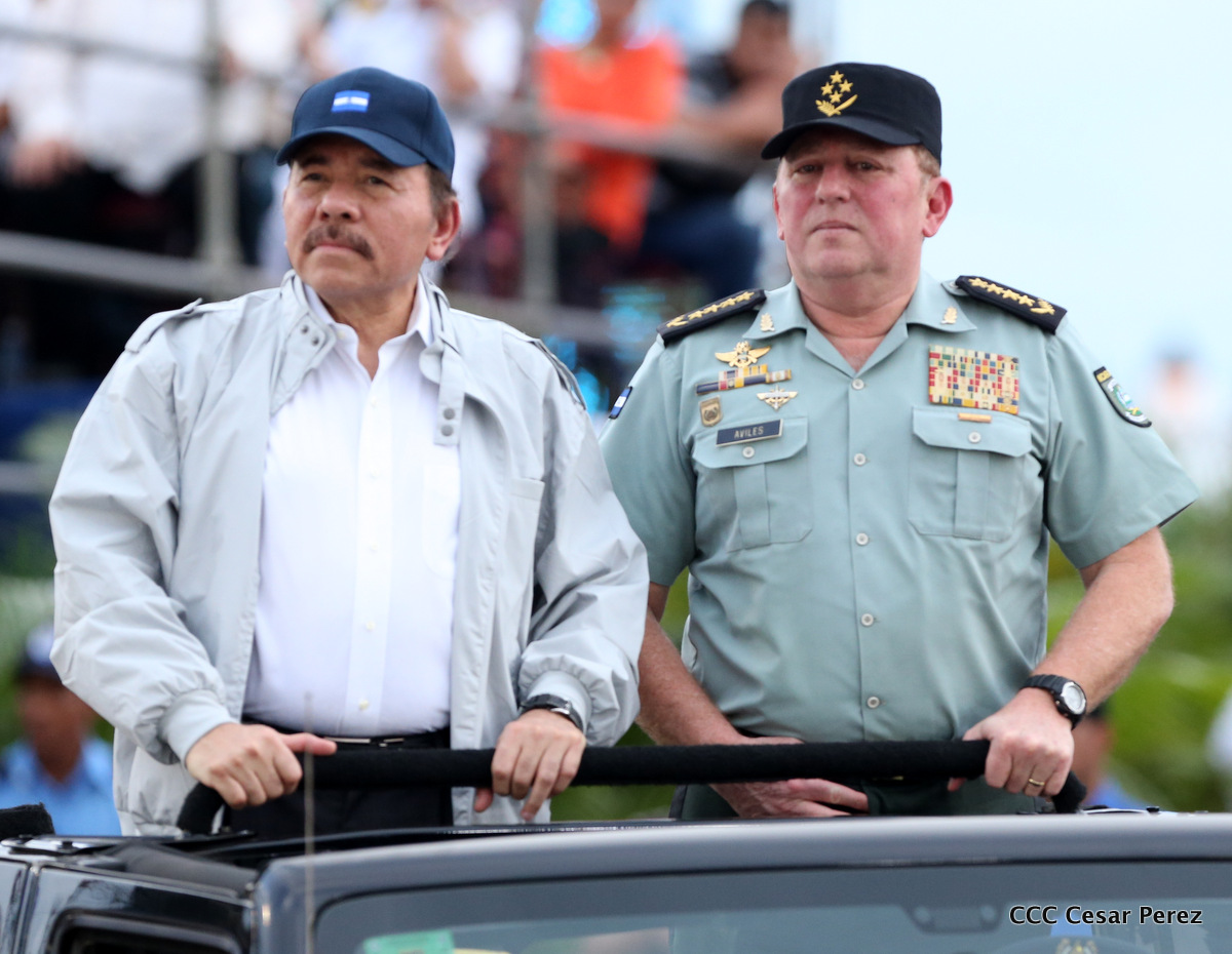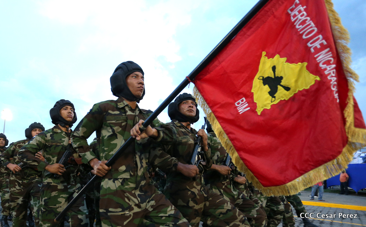 El Presidente de Nicaragua, Comandante Daniel Ortega Saavedra, y la Coordinadora del Consejo de Comunicación y Ciudadanía, Compañera Rosario Murillo, encabezaron este sábado el desfile militar en ocasión del 37 aniversario de la fundación de las fuerzas armadas de Nicaragua.