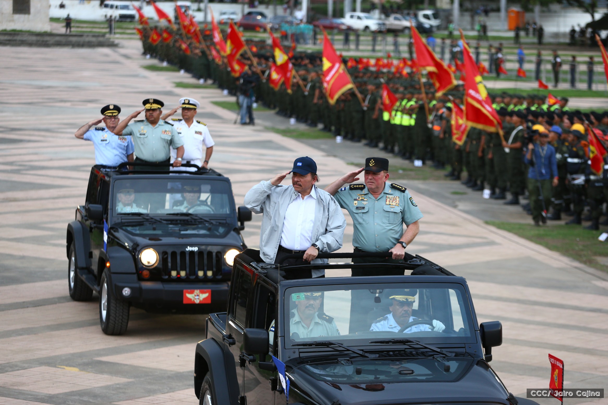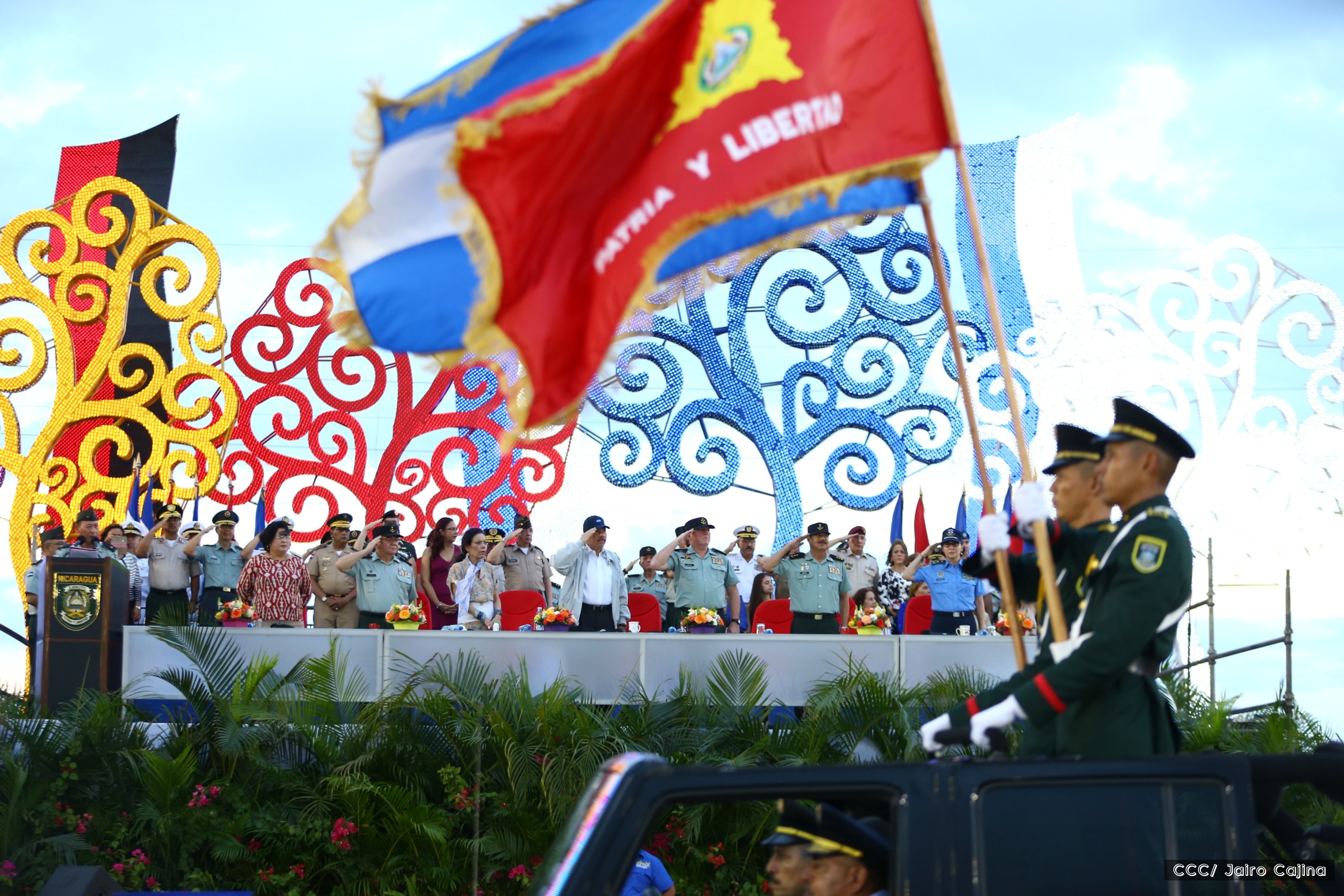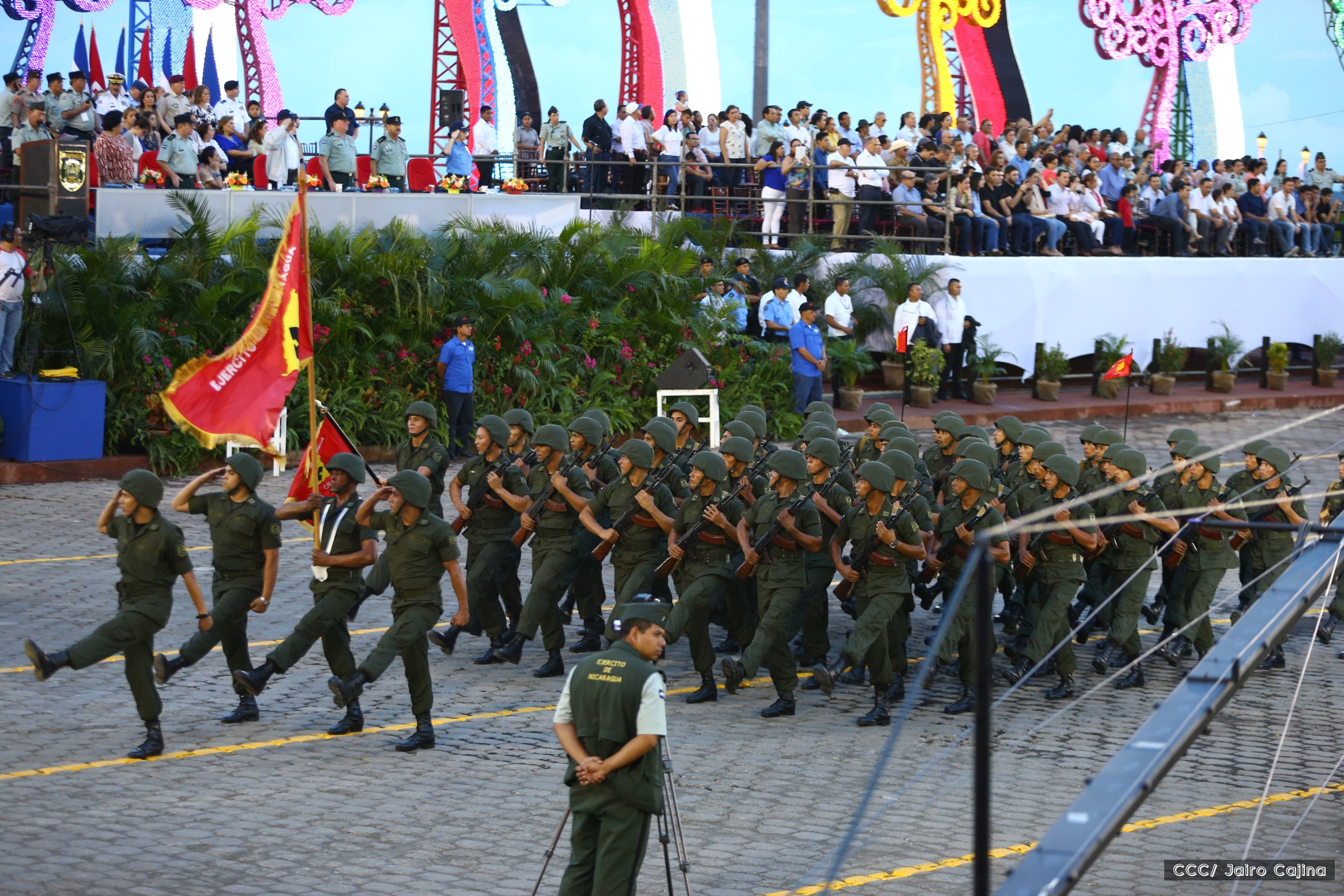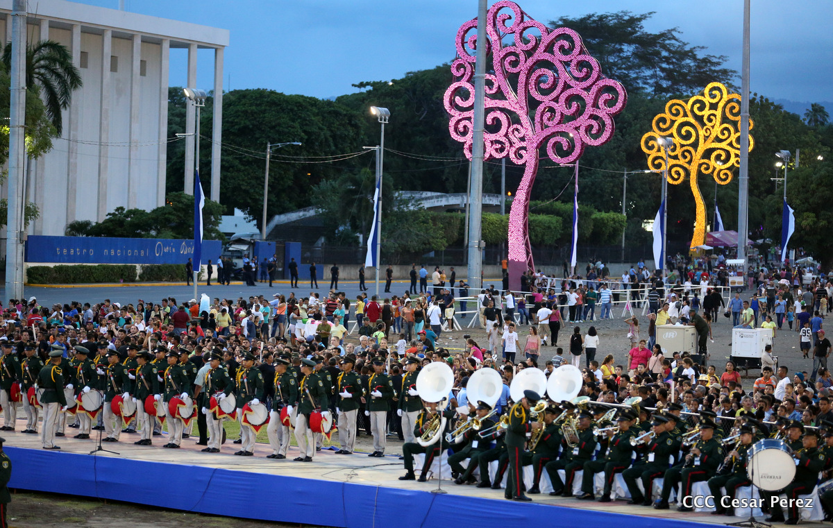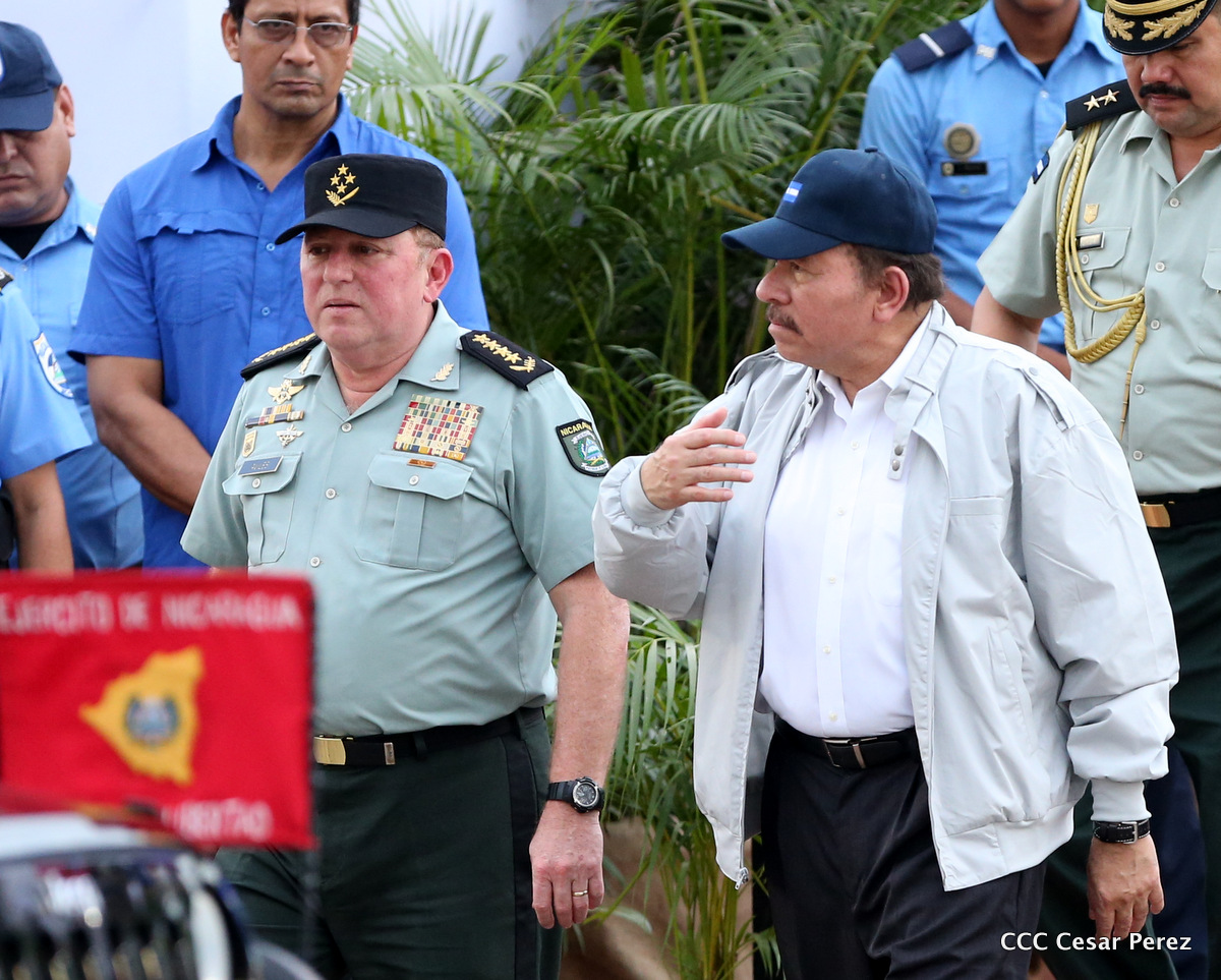 El Presidente de Nicaragua, Comandante Daniel Ortega Saavedra, y la Coordinadora del Consejo de Comunicación y Ciudadanía, Compañera Rosario Murillo, encabezaron este sábado el desfile militar en ocasión del 37 aniversario de la fundación de las fuerzas armadas de Nicaragua.