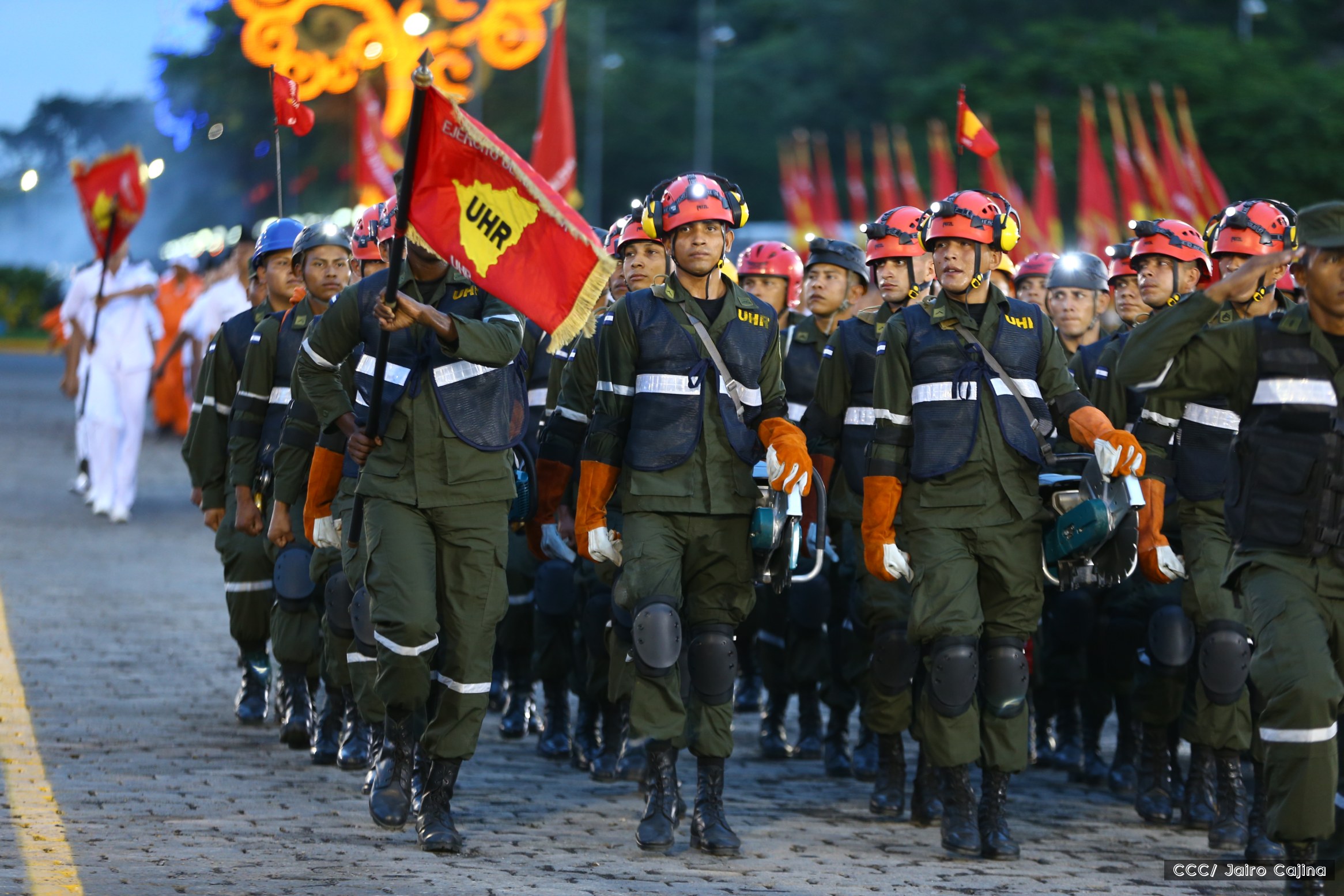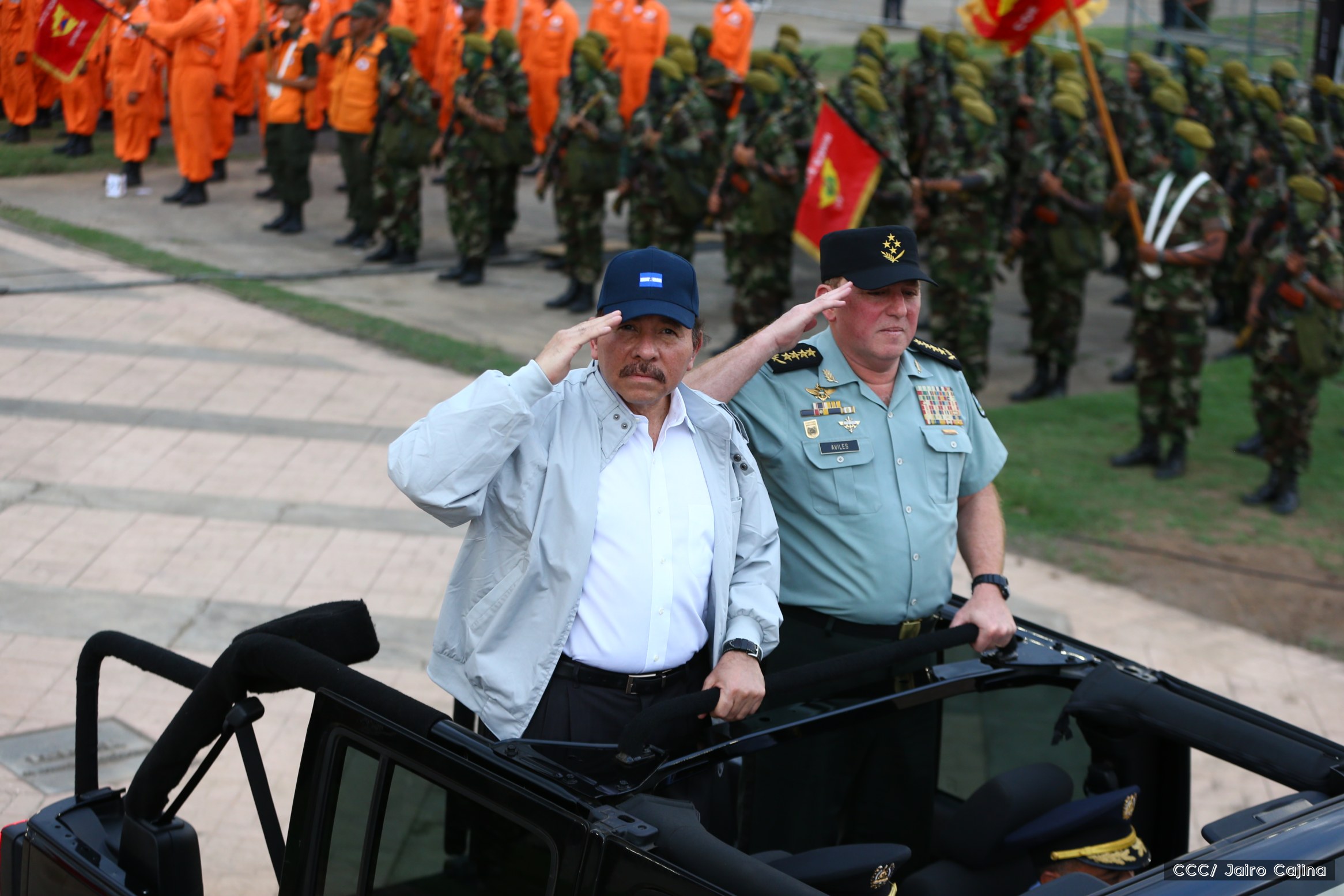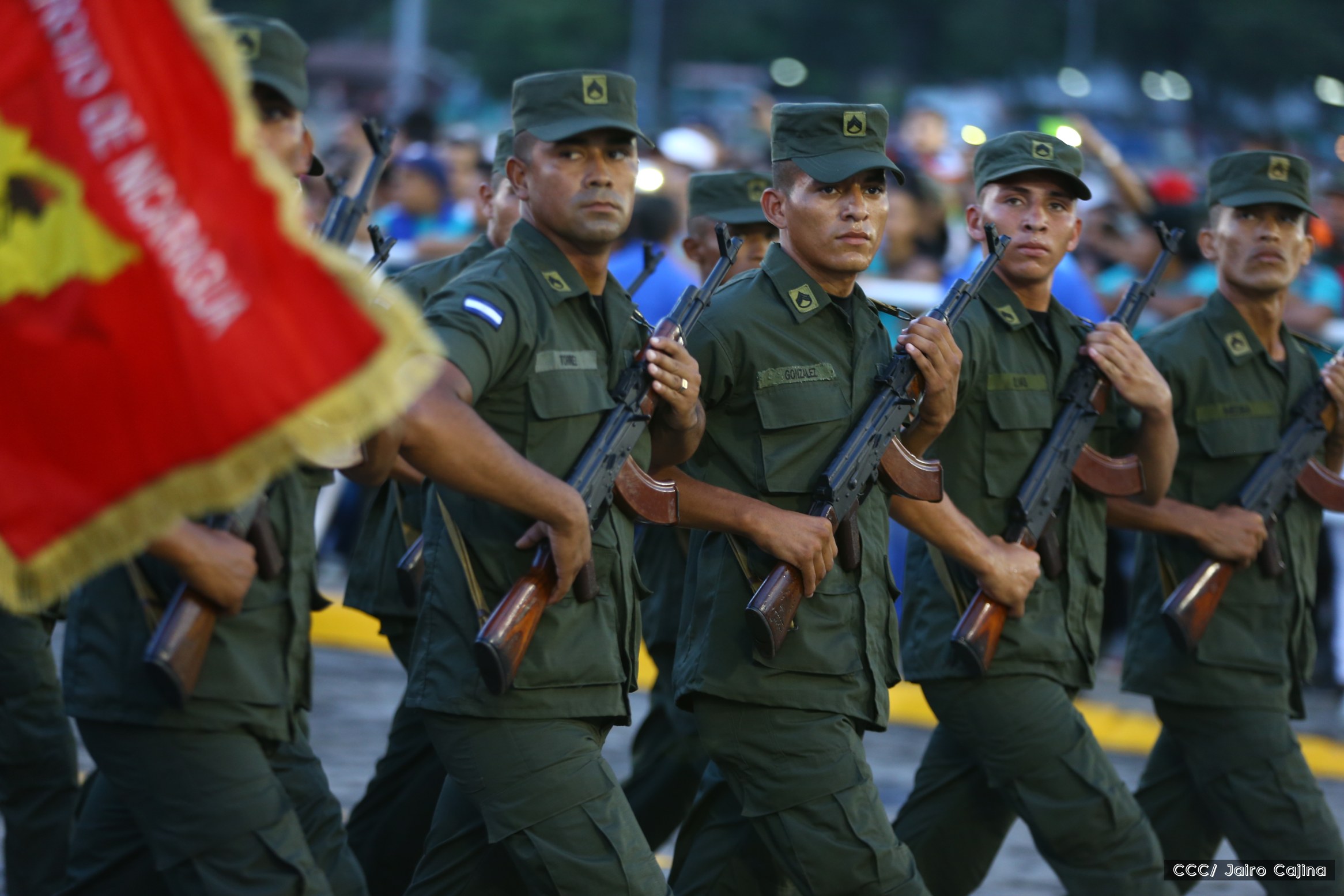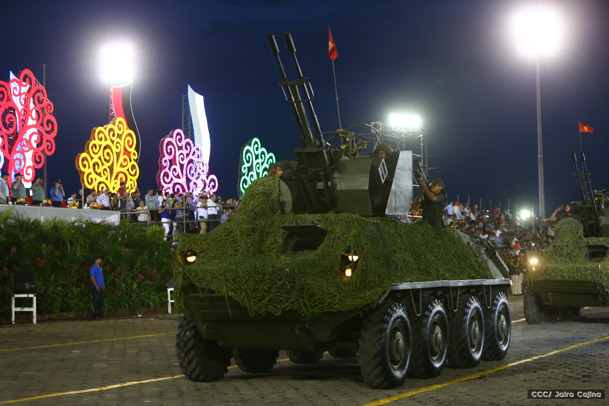 El Presidente de Nicaragua, Comandante Daniel Ortega Saavedra, y la Coordinadora del Consejo de Comunicación y Ciudadanía, Compañera Rosario Murillo, encabezaron este sábado el desfile militar en ocasión del 37 aniversario de la fundación de las fuerzas armadas de Nicaragua.