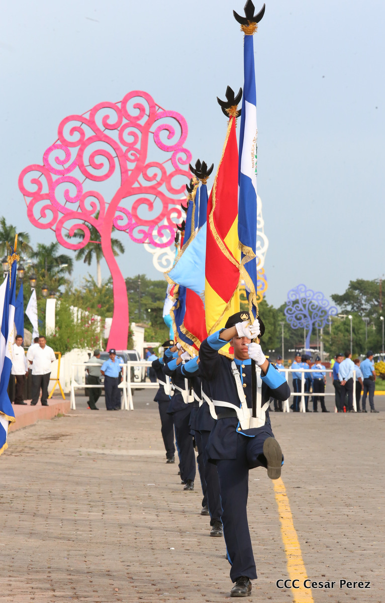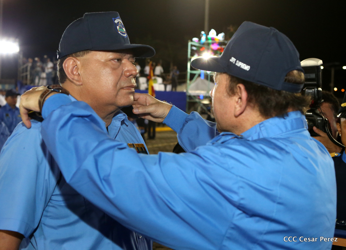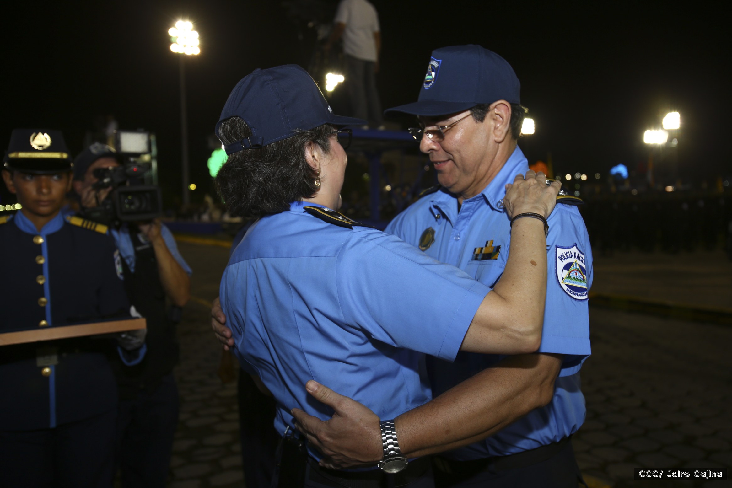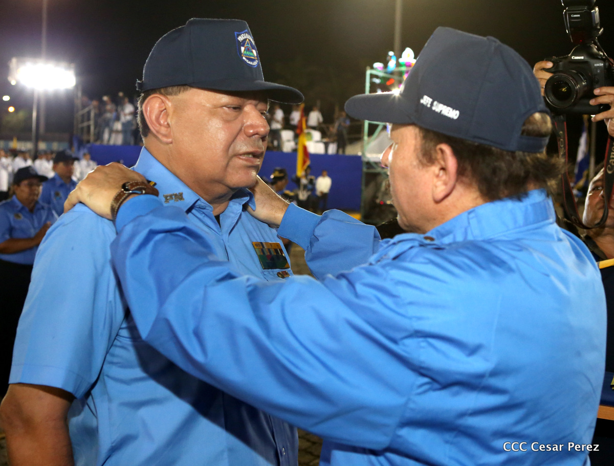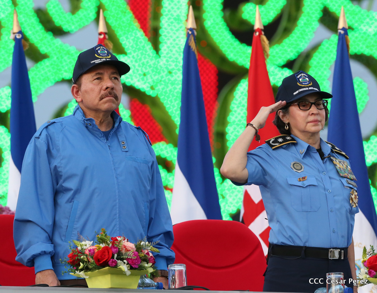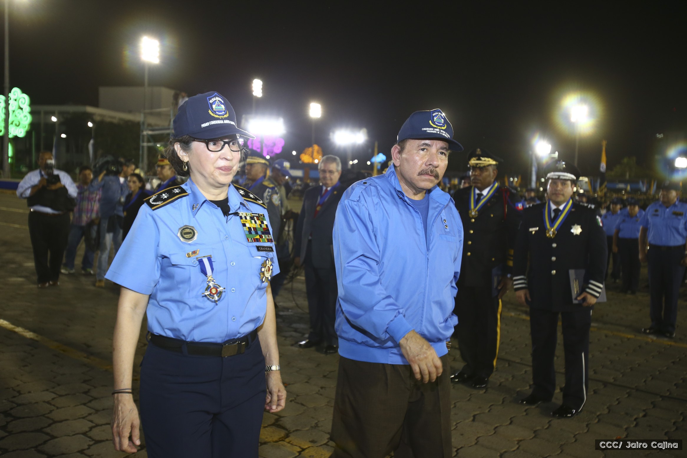 El Presidente de la República, Comandante Daniel Ortega, y la Compañera Rosario Murillo, Coordinadora del Consejo de Comunicación y Ciudadanía, presidieron el acto del 37 aniversario de la Policía Nacional.