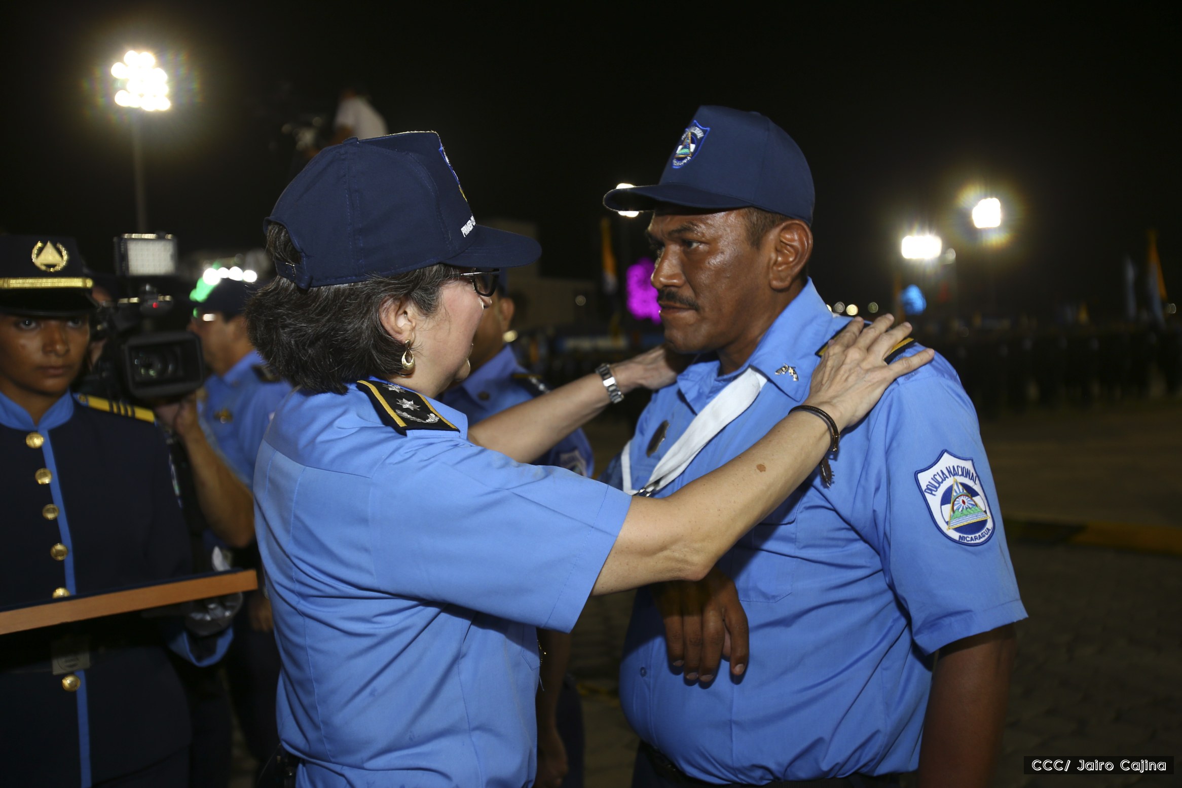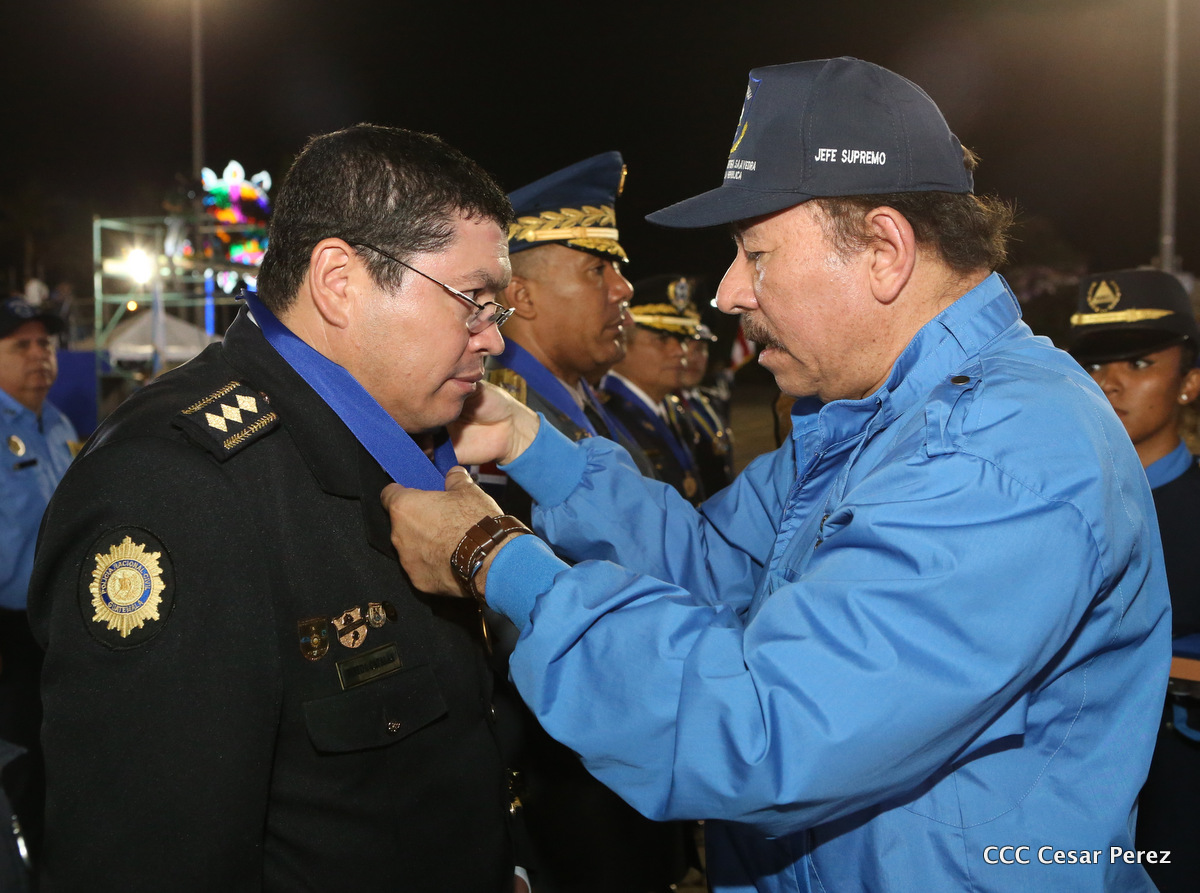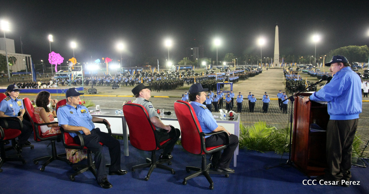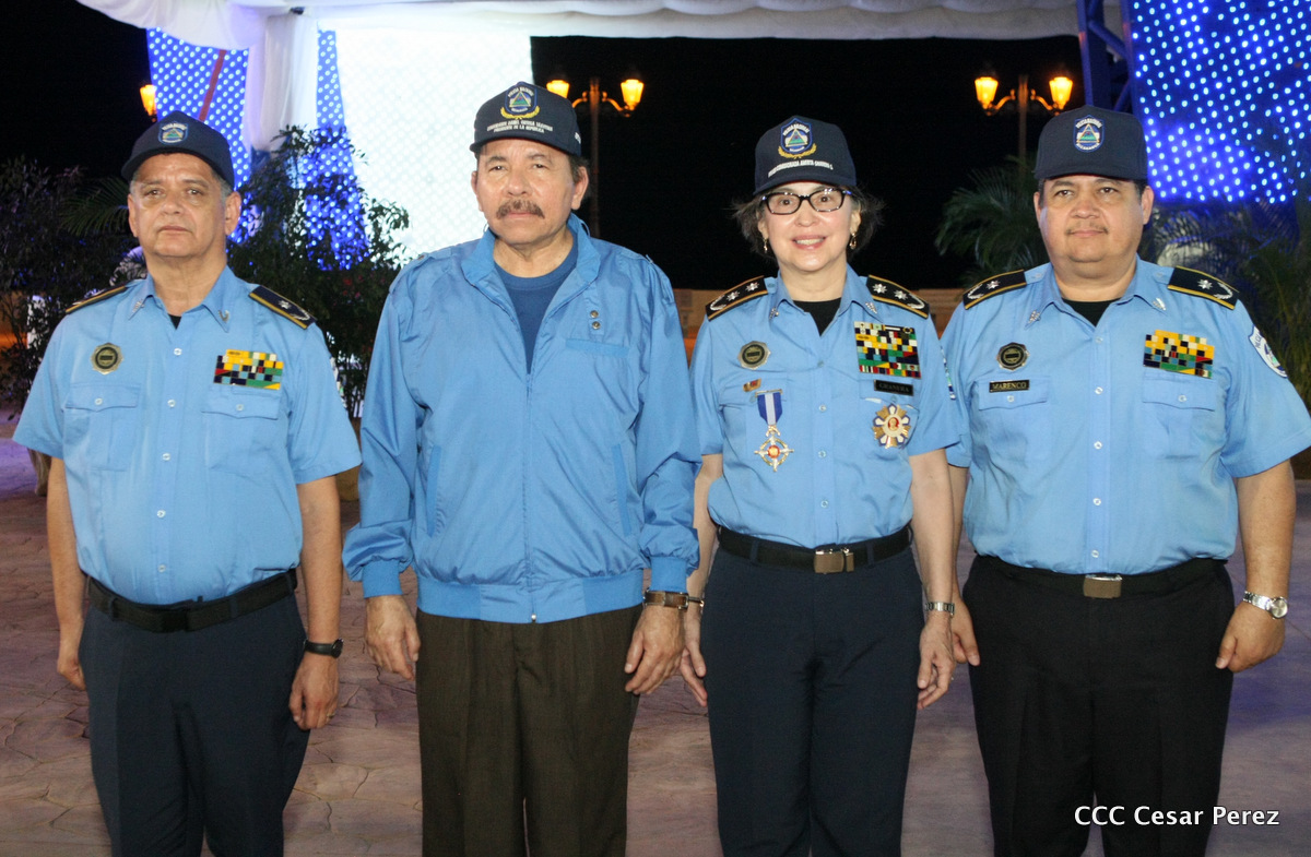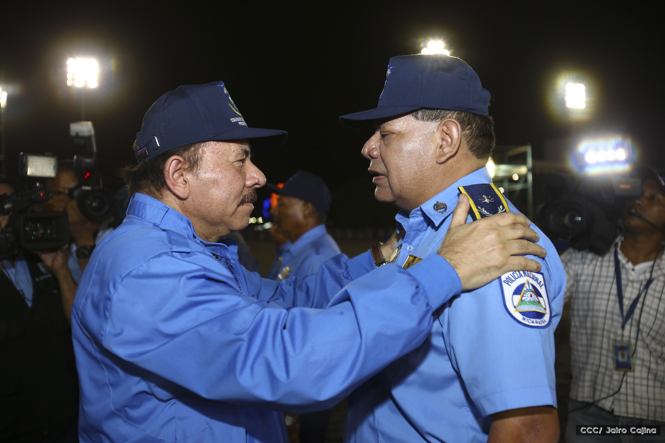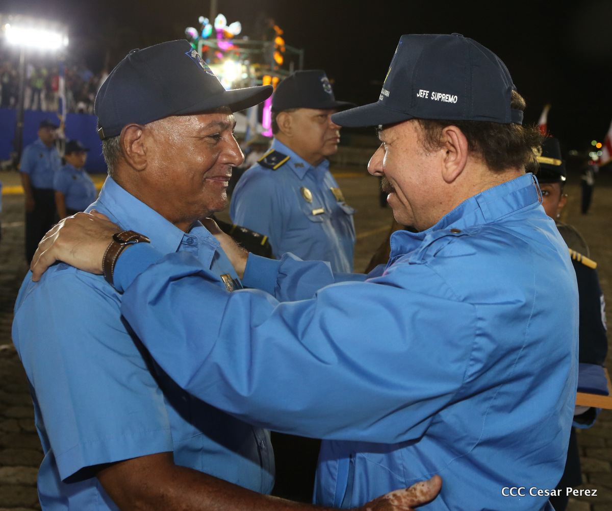 El Presidente de la República, Comandante Daniel Ortega, y la Compañera Rosario Murillo, Coordinadora del Consejo de Comunicación y Ciudadanía, presidieron el acto del 37 aniversario de la Policía Nacional.