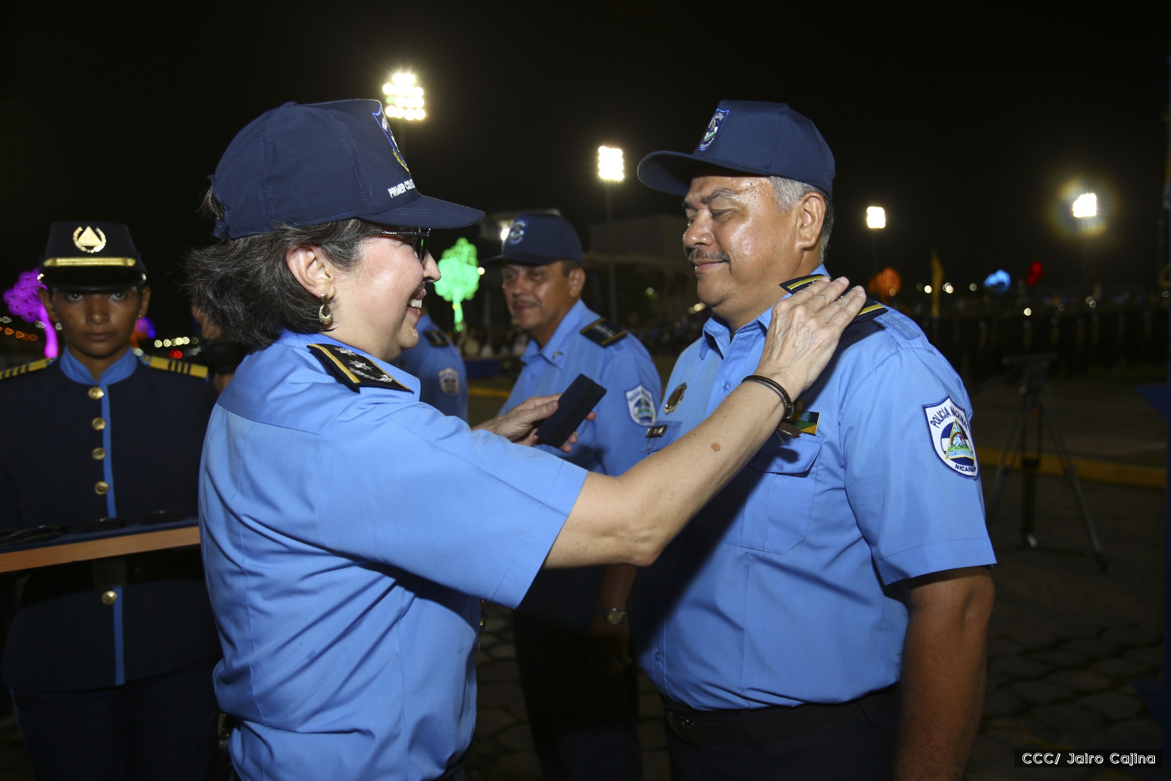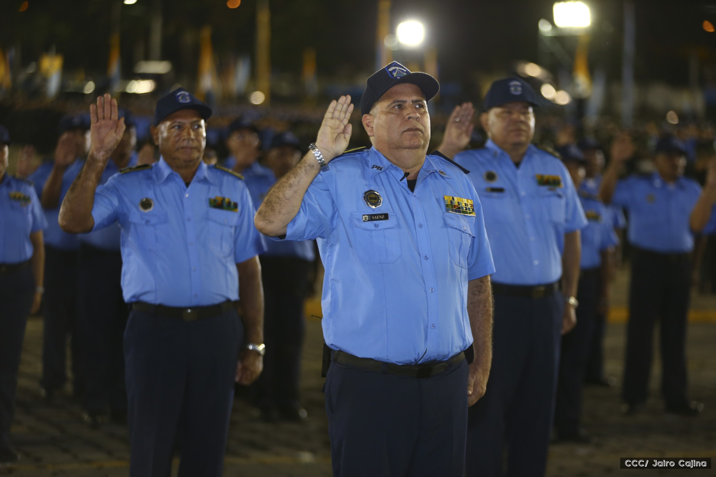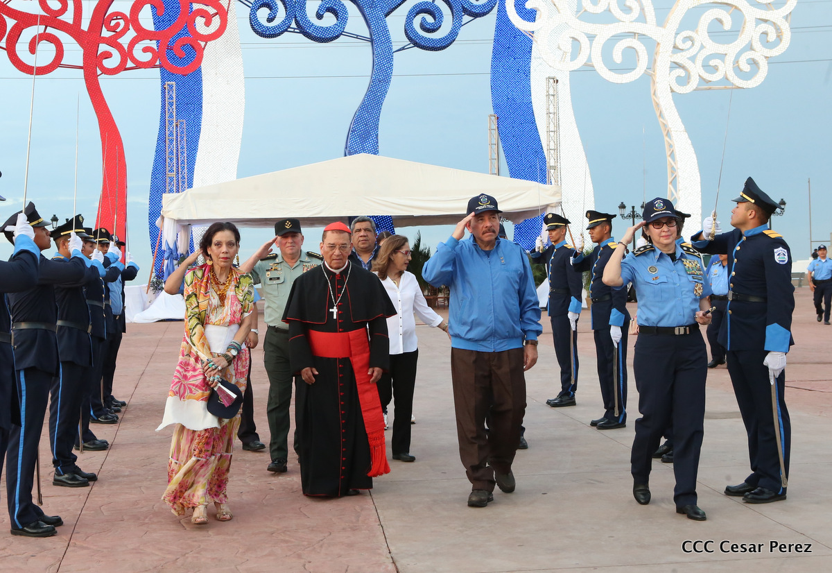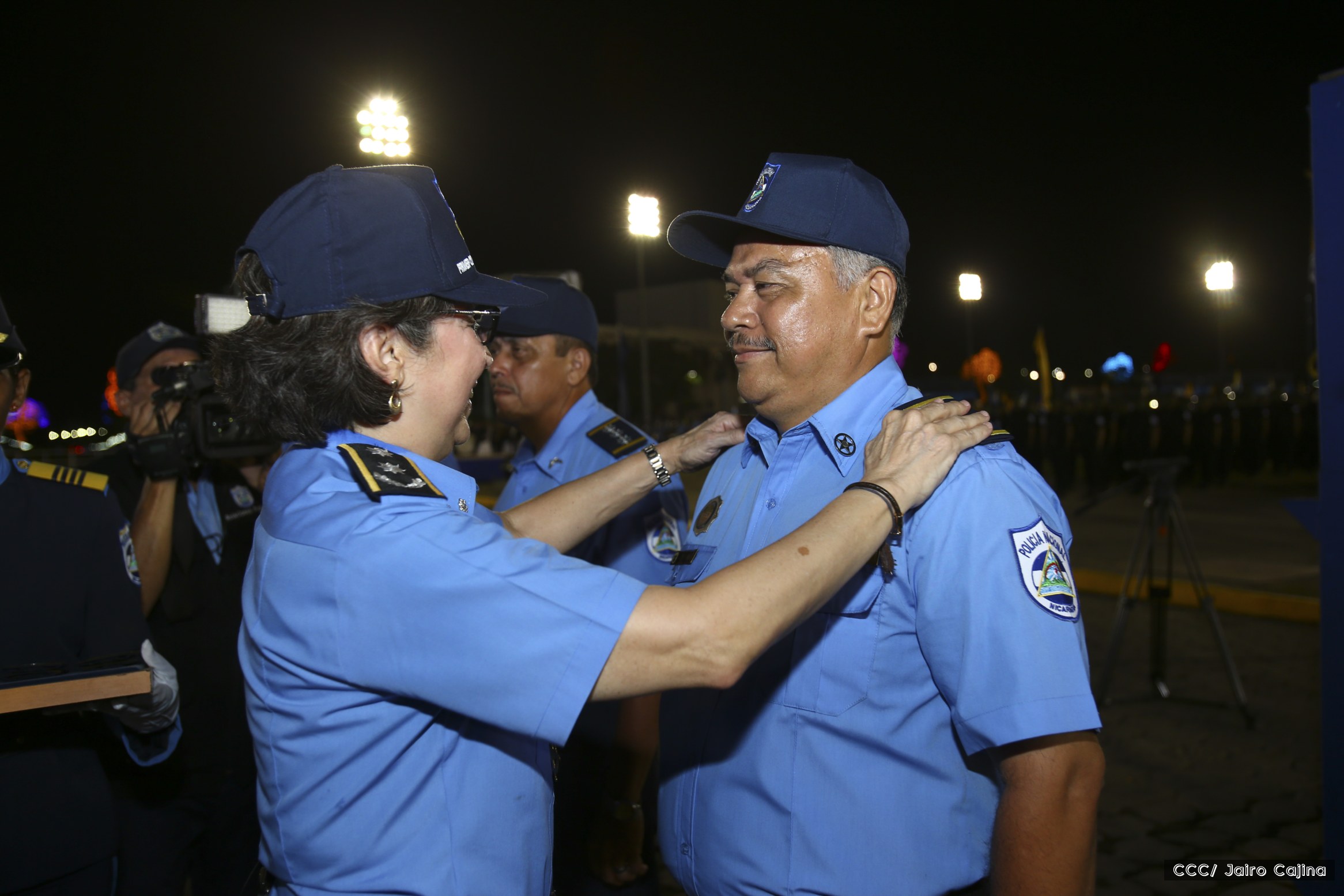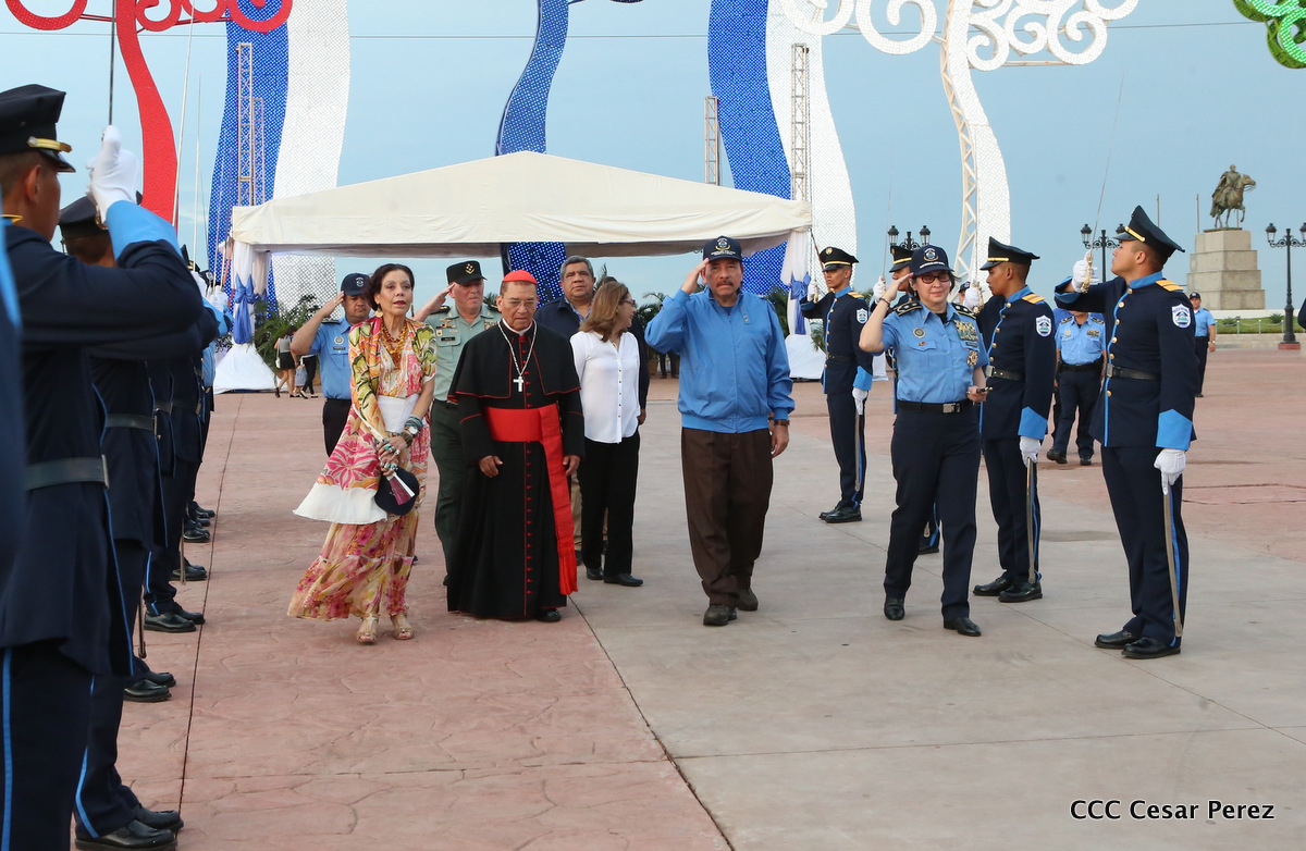 El Presidente de la República, Comandante Daniel Ortega, y la Compañera Rosario Murillo, Coordinadora del Consejo de Comunicación y Ciudadanía, presidieron el acto del 37 aniversario de la Policía Nacional.