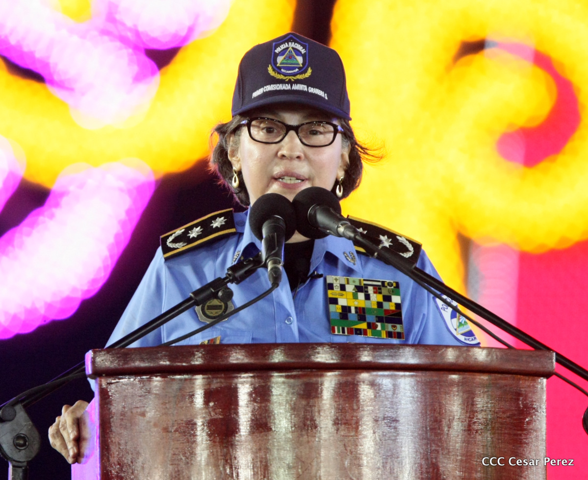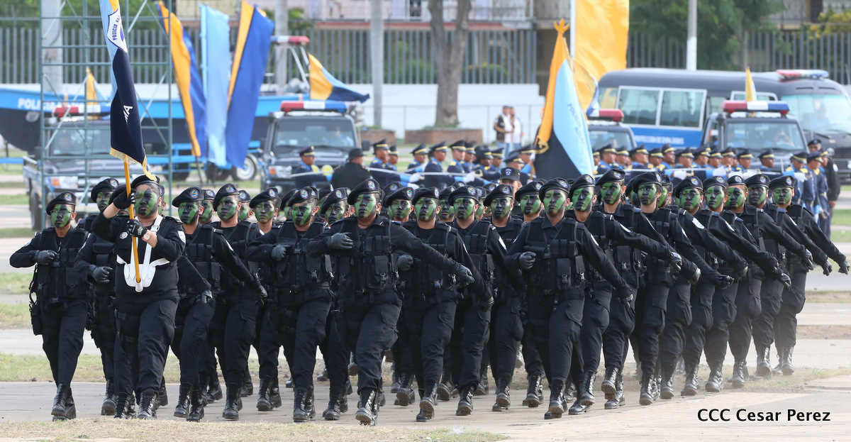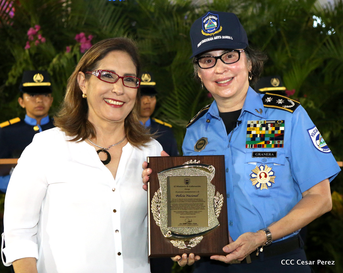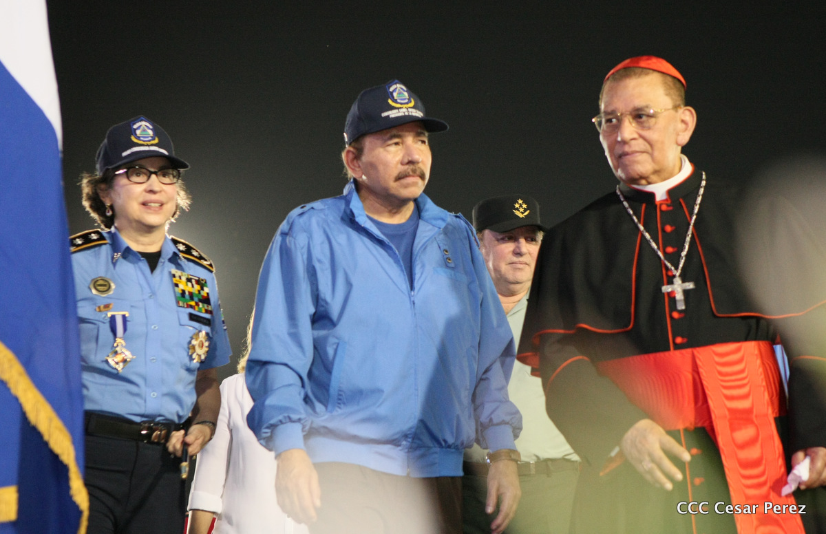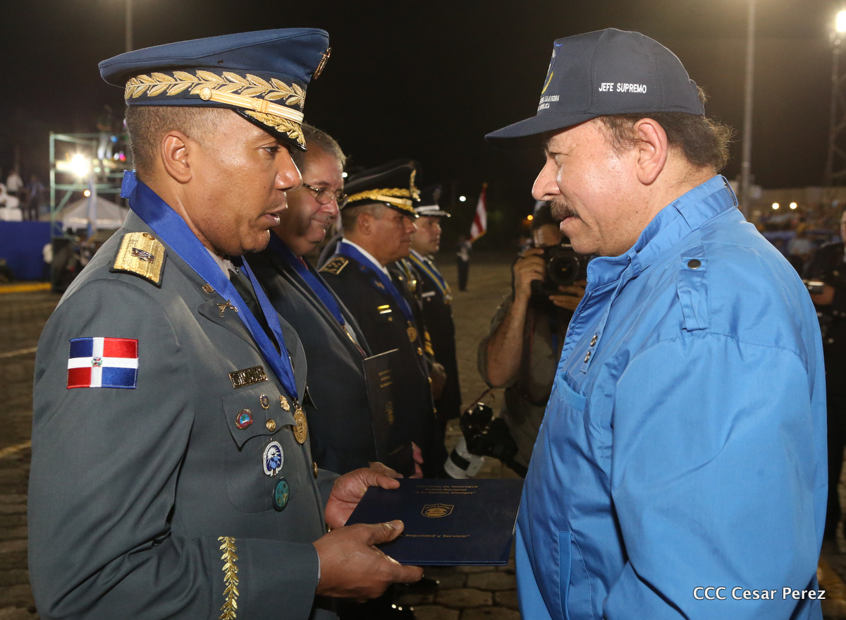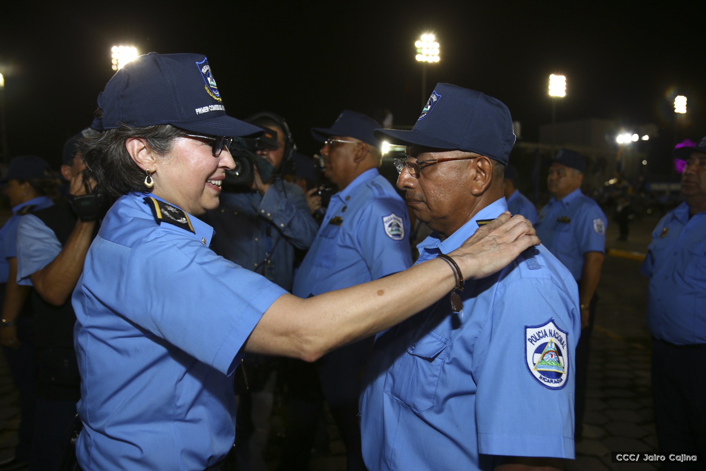 El Presidente de la República, Comandante Daniel Ortega, y la Compañera Rosario Murillo, Coordinadora del Consejo de Comunicación y Ciudadanía, presidieron el acto del 37 aniversario de la Policía Nacional.