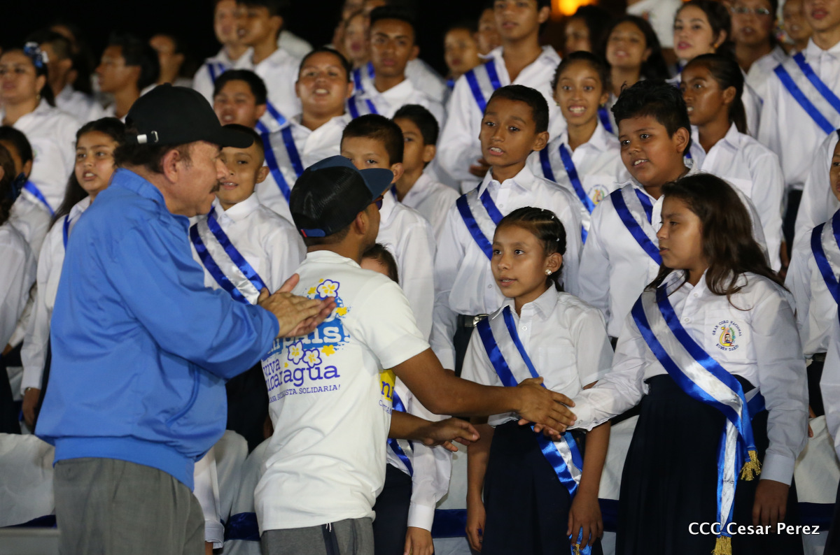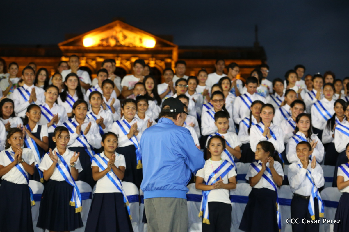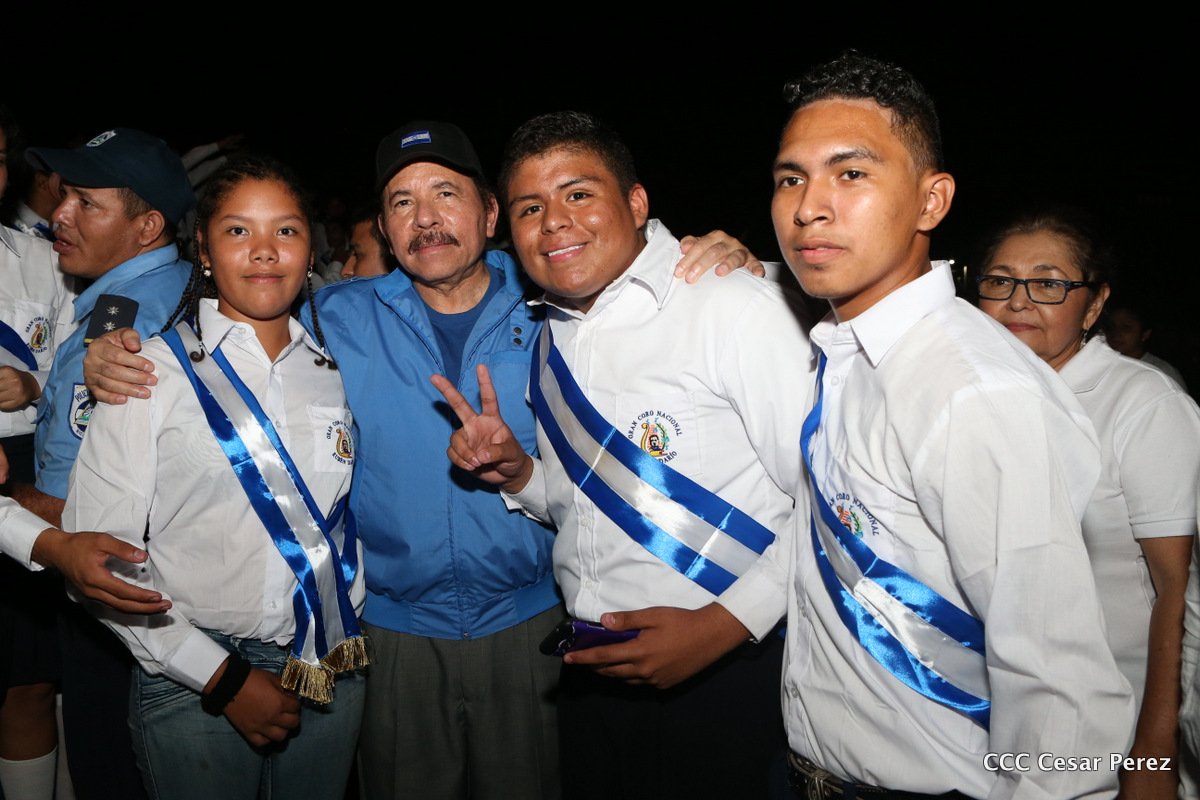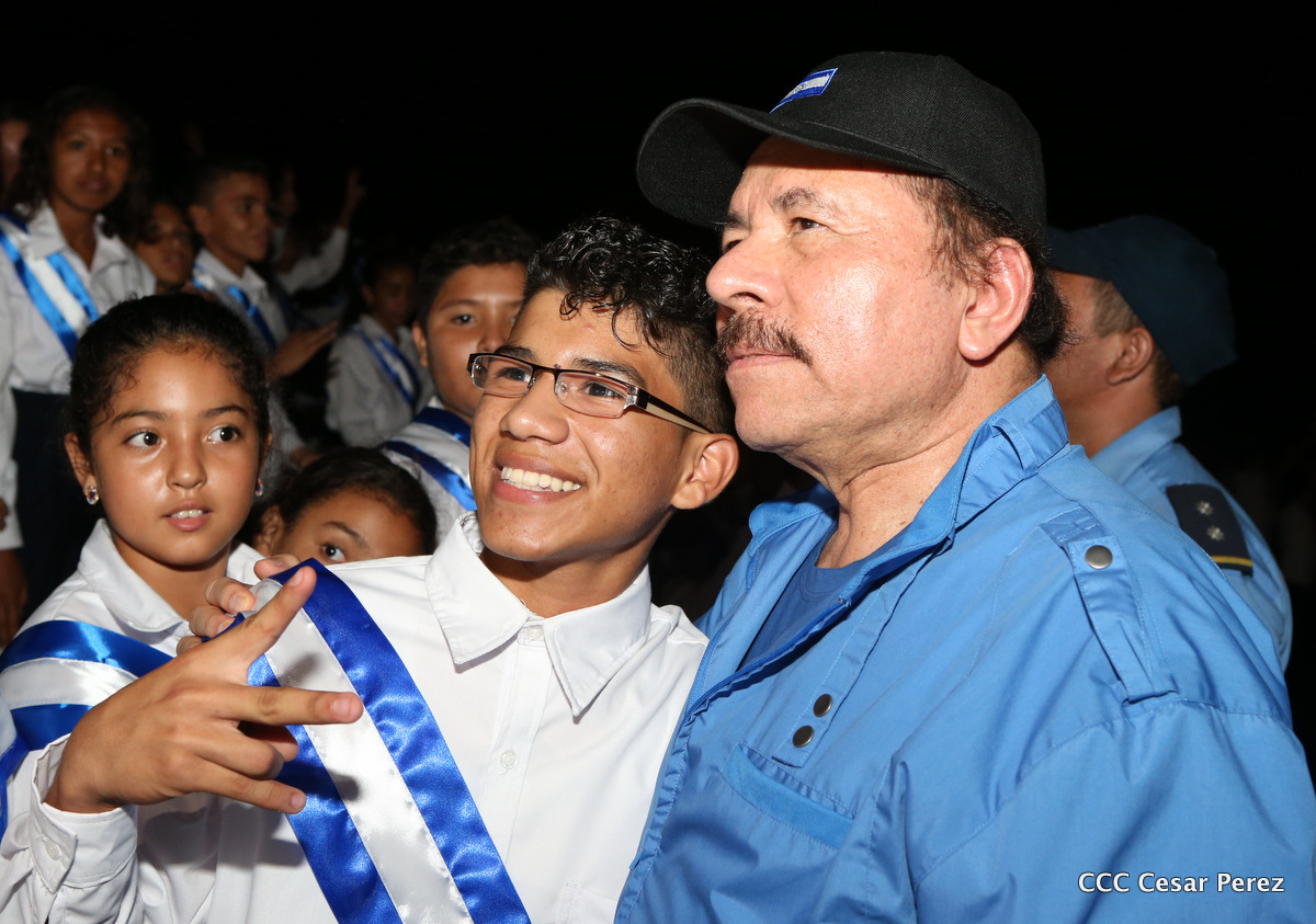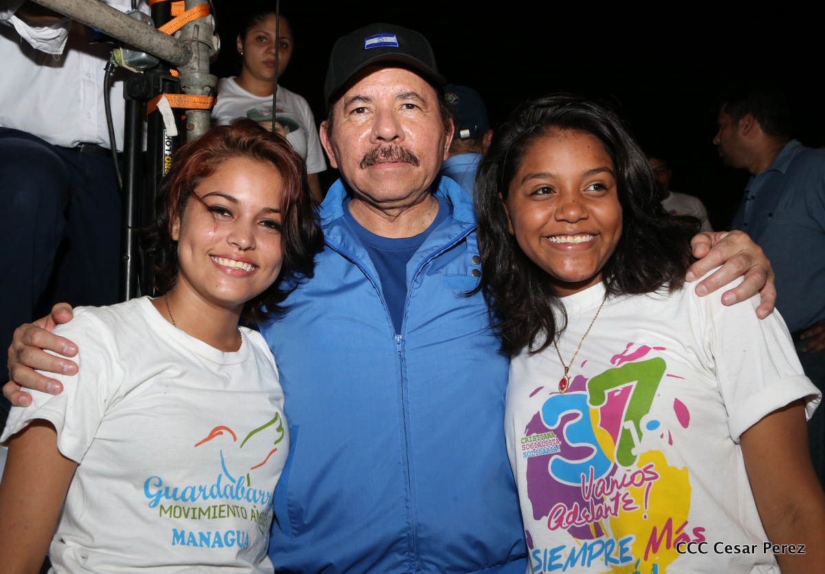 El Presidente de la República, Comandante Daniel Ortega, y la Coordinadora del Consejo de Comunicación y Ciudadanía, Compañera Rosario Murillo, recibieron este lunes de manos del tetracampeón mundial de boxeo, Román “Chocolate” González, la Antorcha de la Libertad y la Unidad Centroamericana.