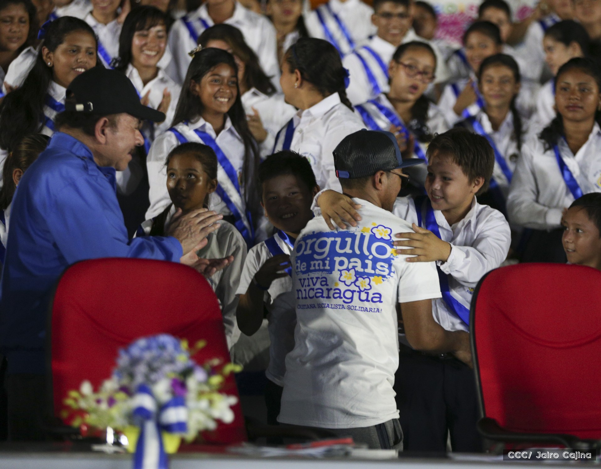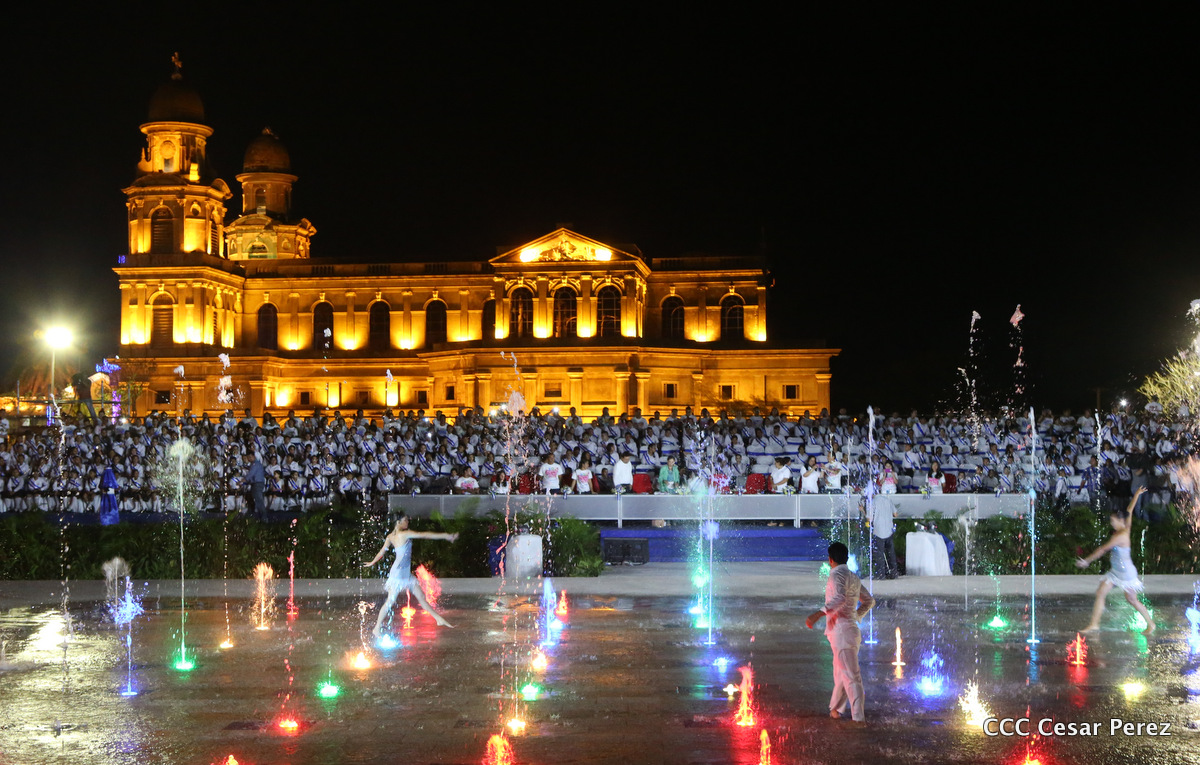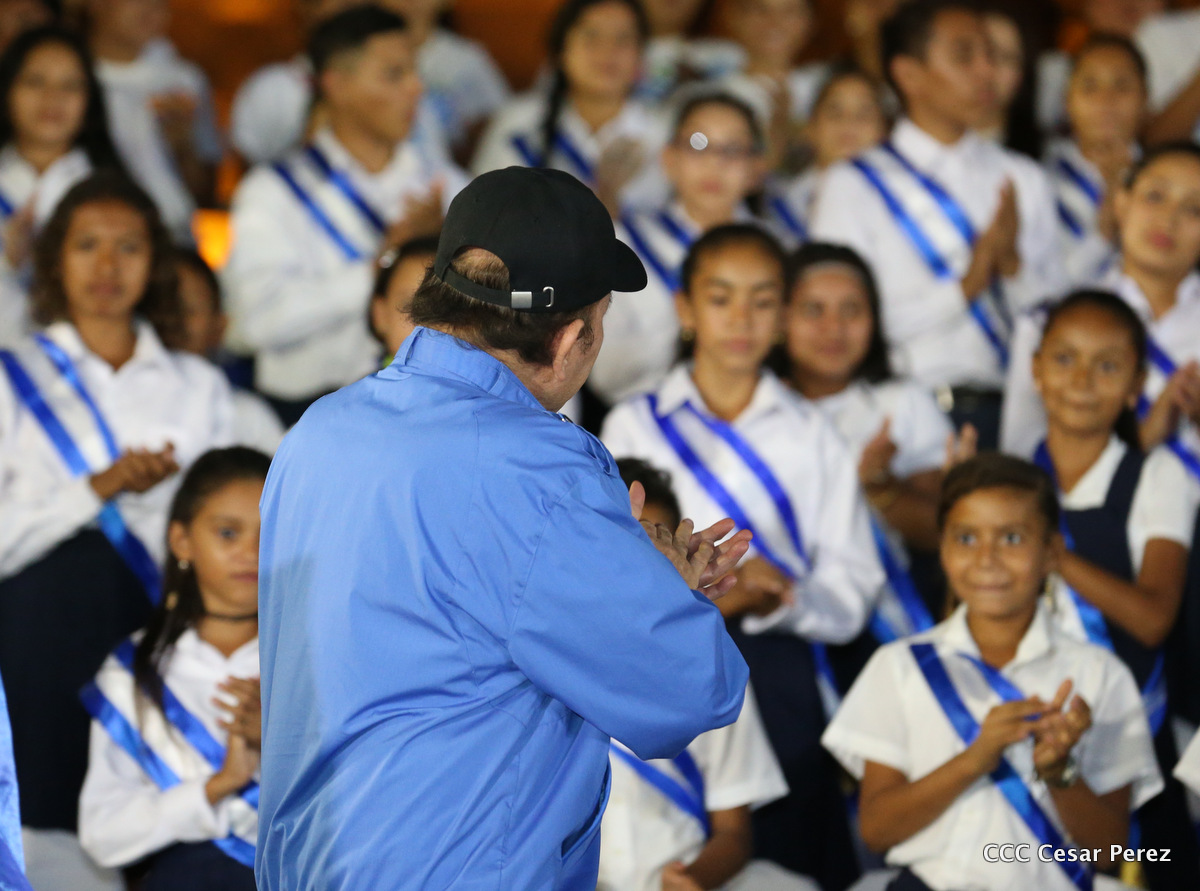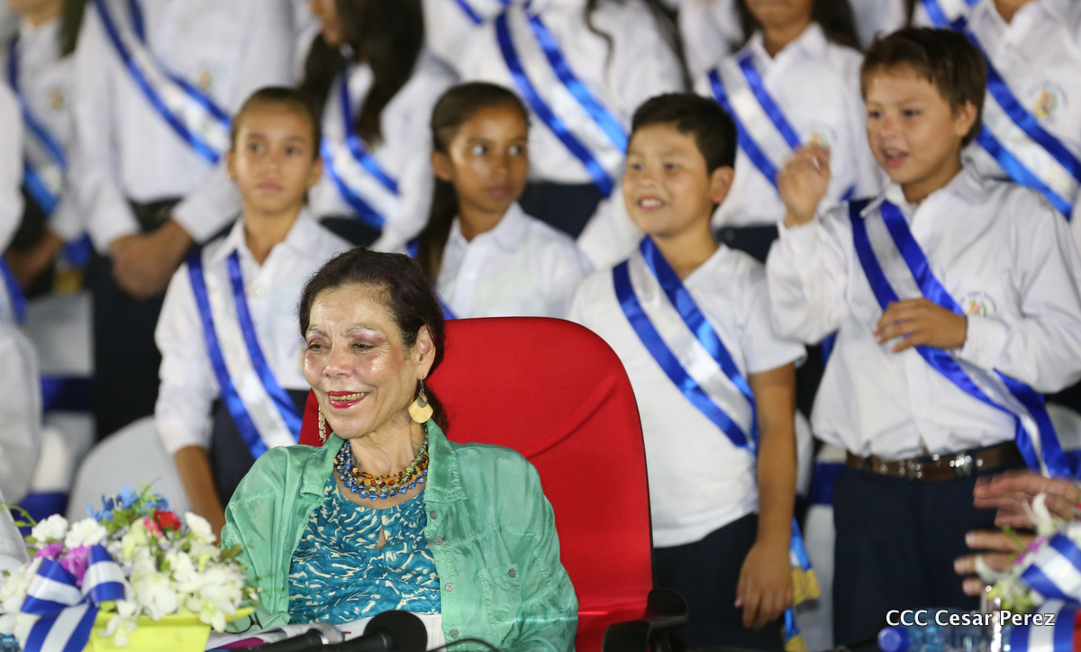 El Presidente de la República, Comandante Daniel Ortega, y la Coordinadora del Consejo de Comunicación y Ciudadanía, Compañera Rosario Murillo, recibieron este lunes de manos del tetracampeón mundial de boxeo, Román “Chocolate” González, la Antorcha de la Libertad y la Unidad Centroamericana.