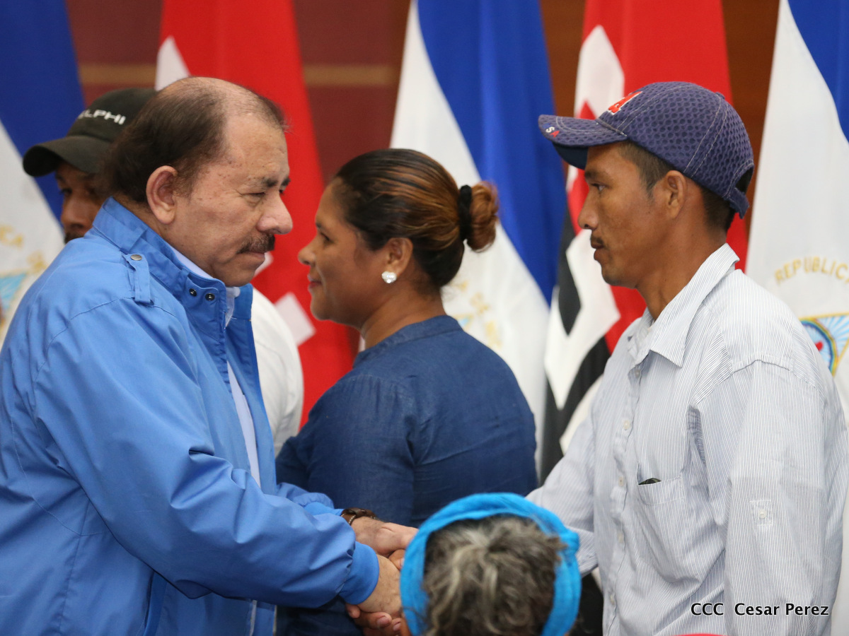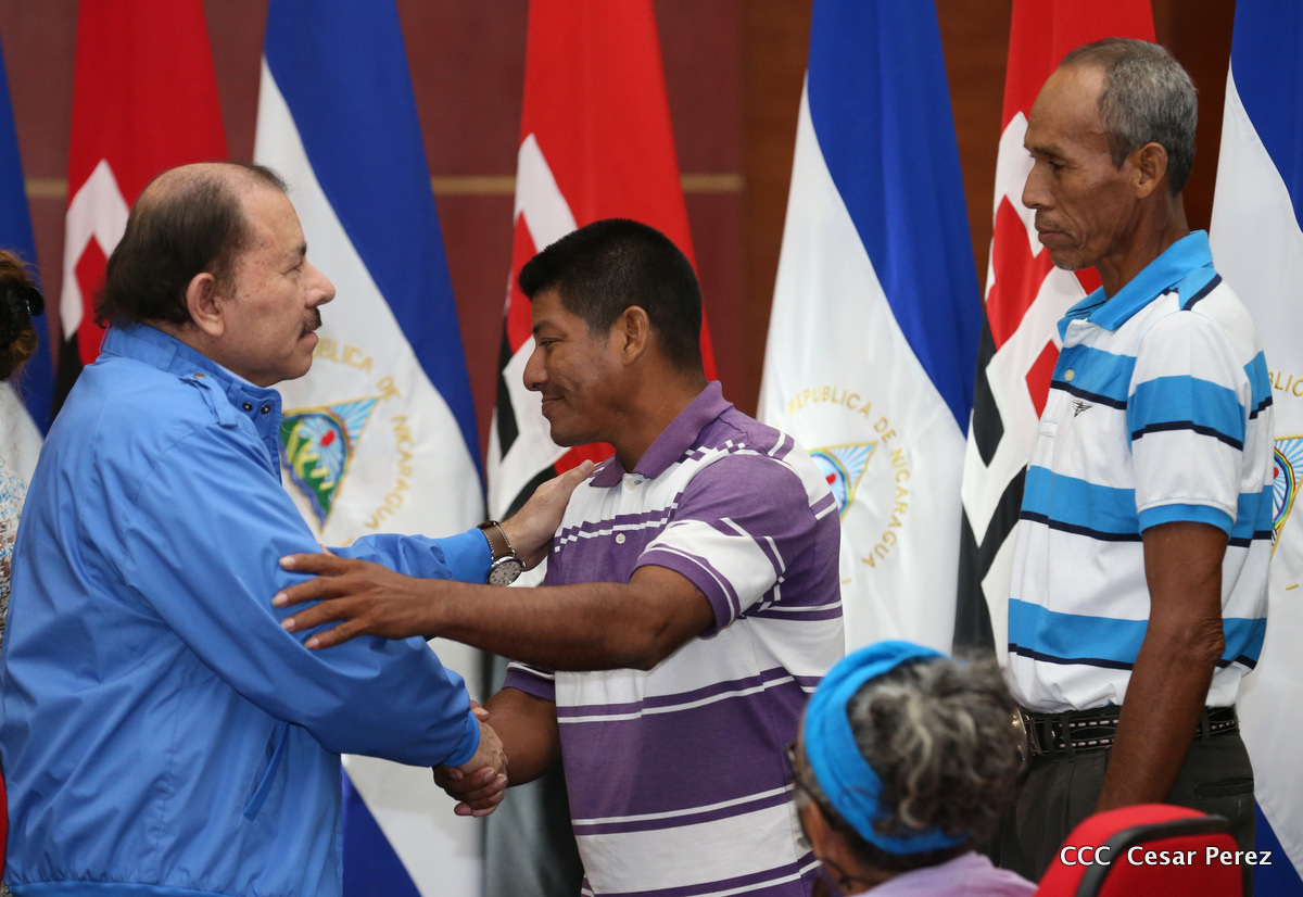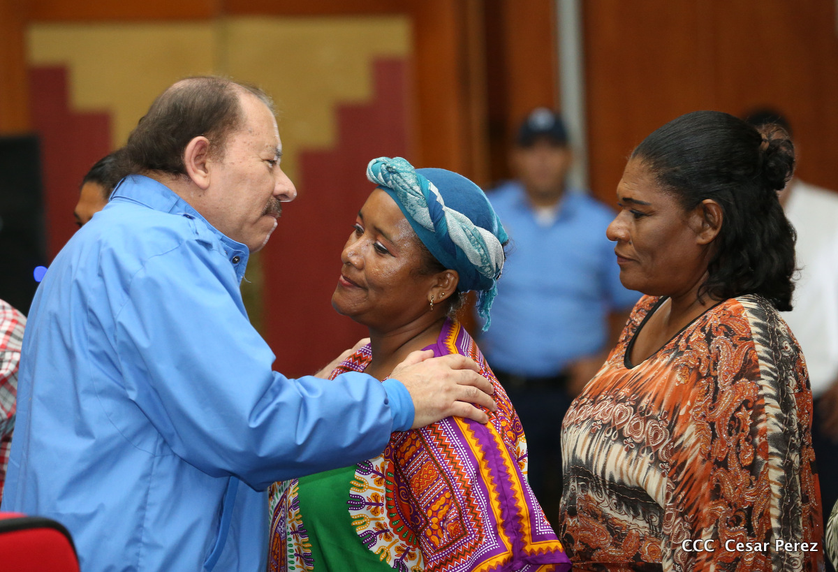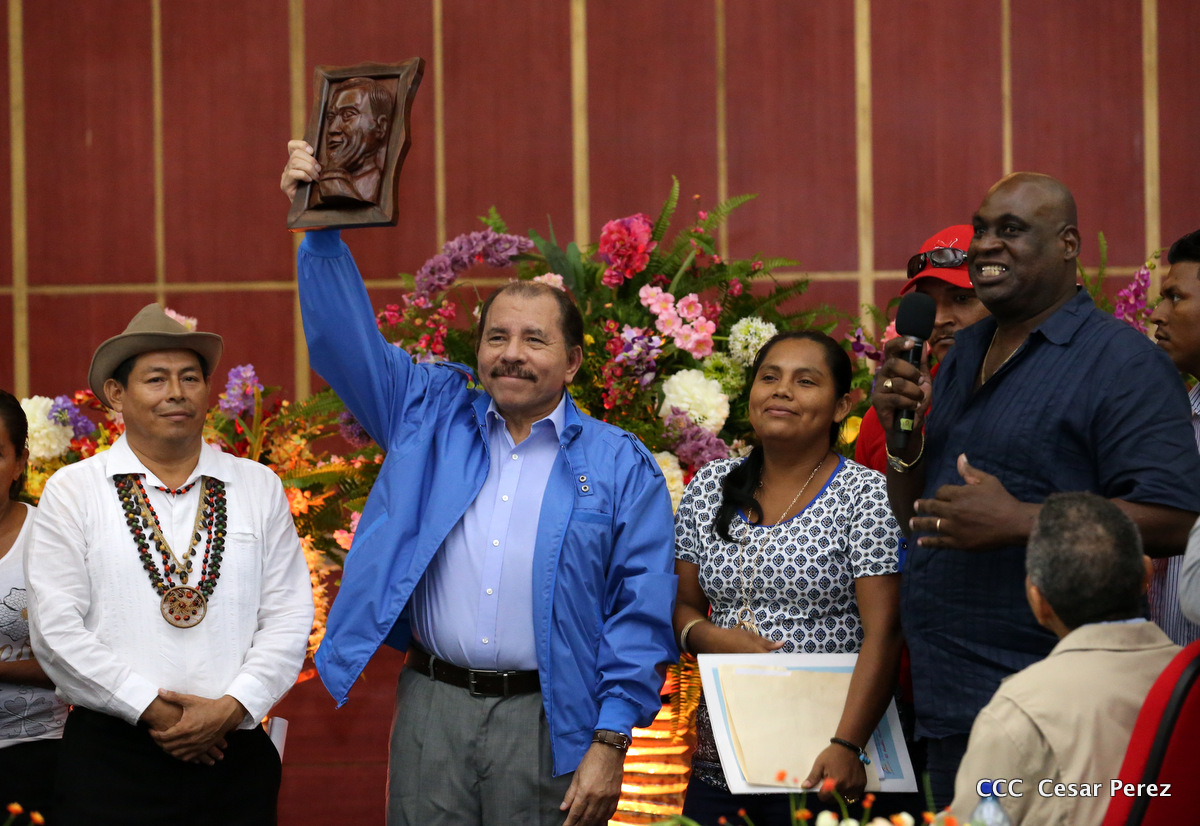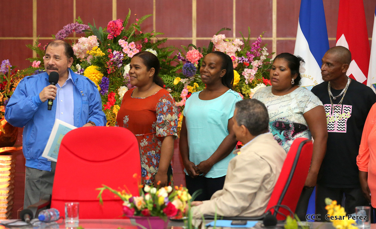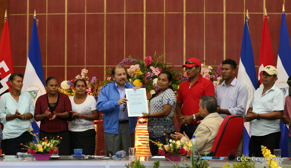 El Comandante Presidente Daniel Ortega entrega títulos comunitarios a los pueblos originarios de la Costa Caribe de Nicaragua.