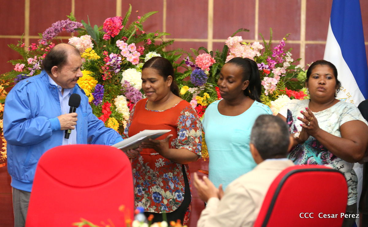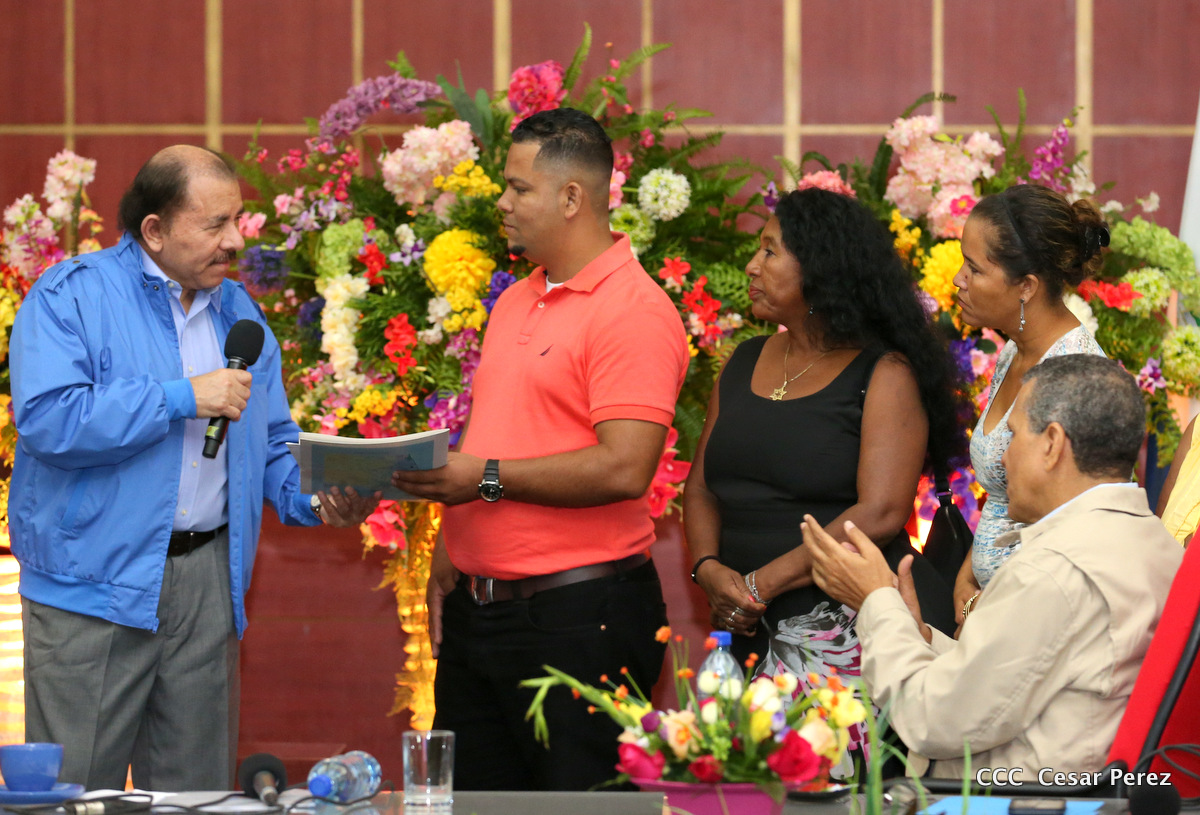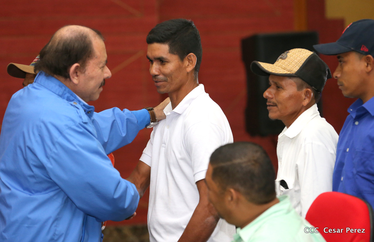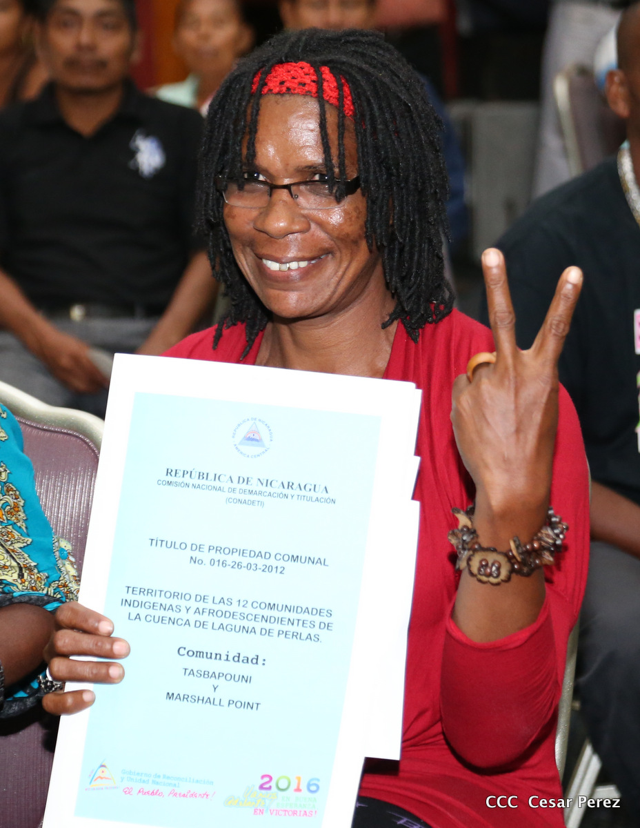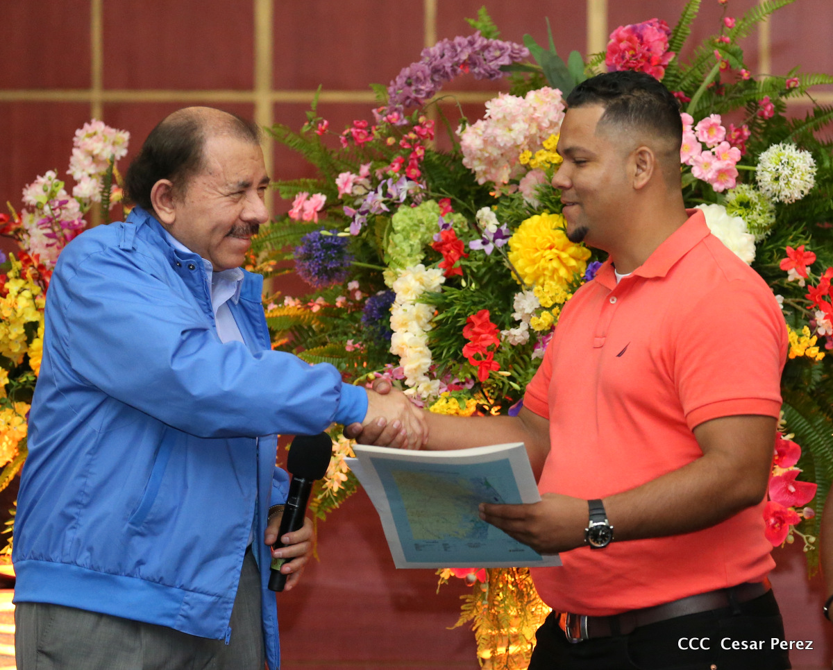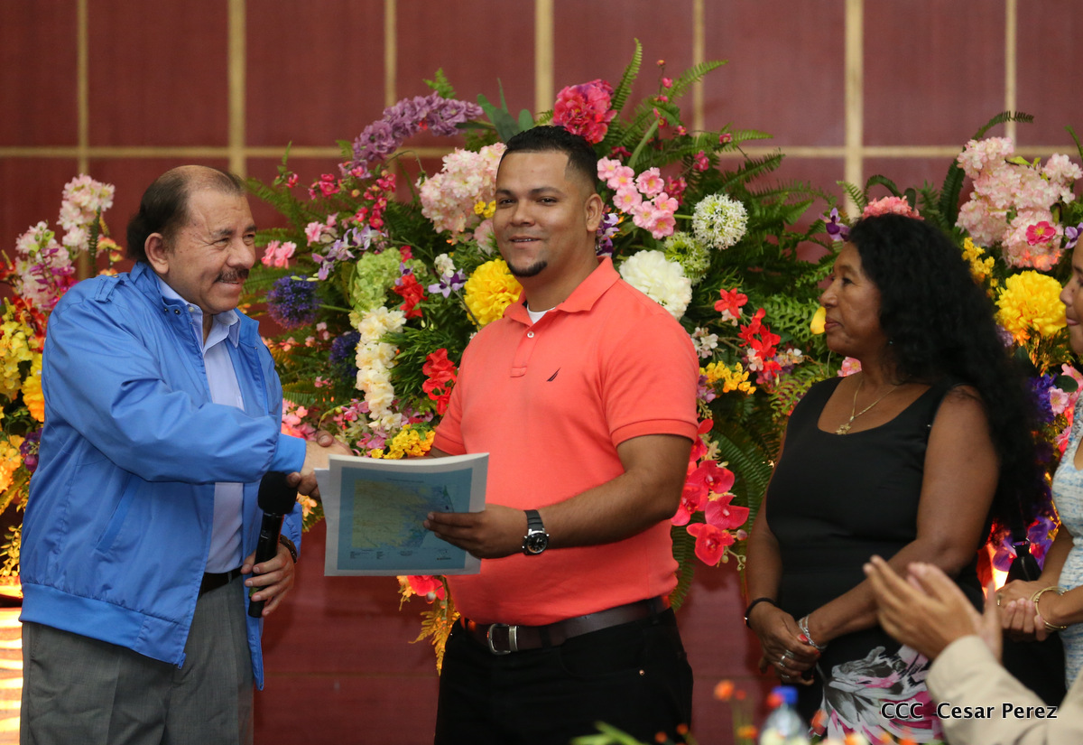 El Comandante Presidente Daniel Ortega entrega títulos comunitarios a los pueblos originarios de la Costa Caribe de Nicaragua.