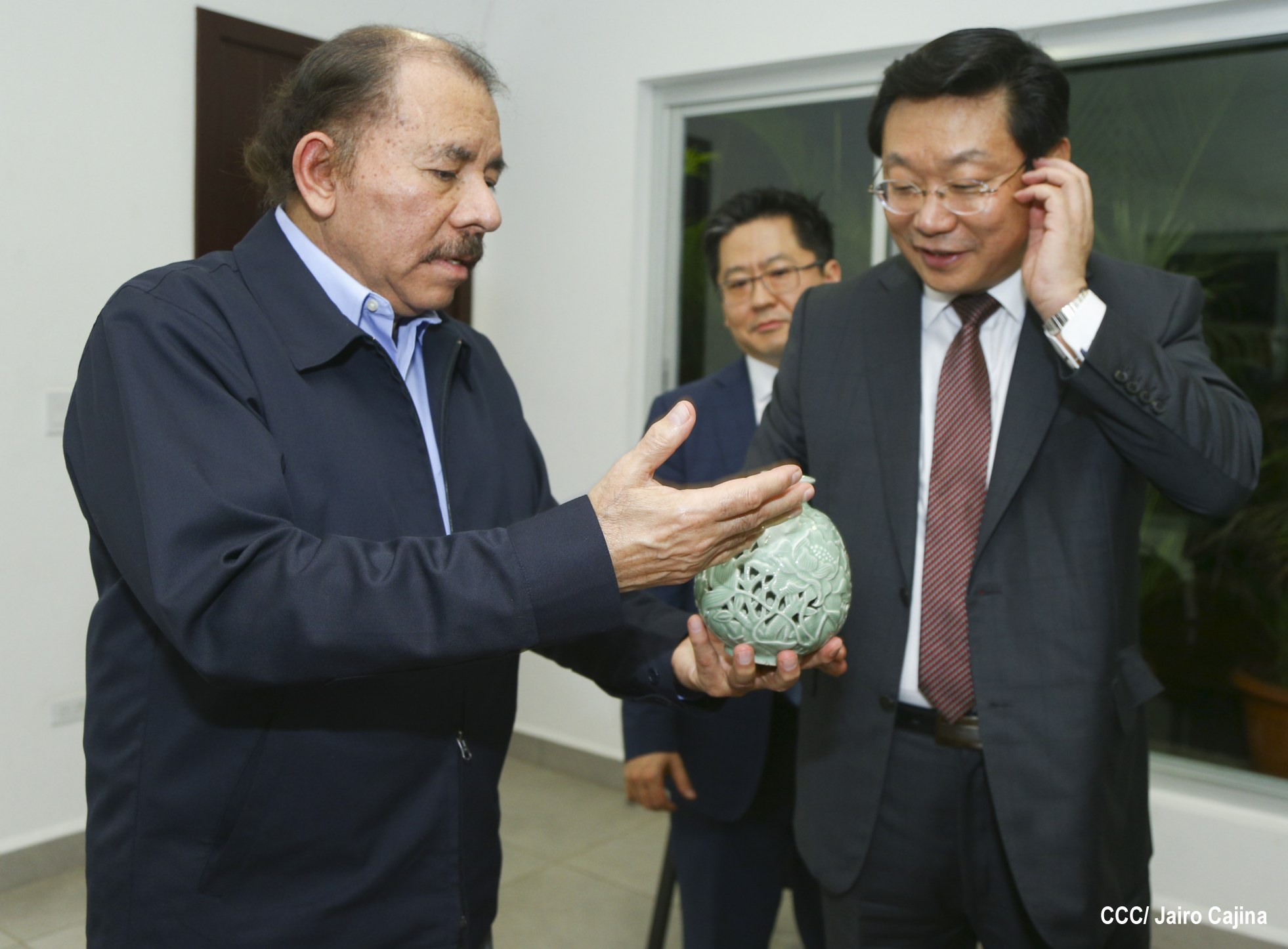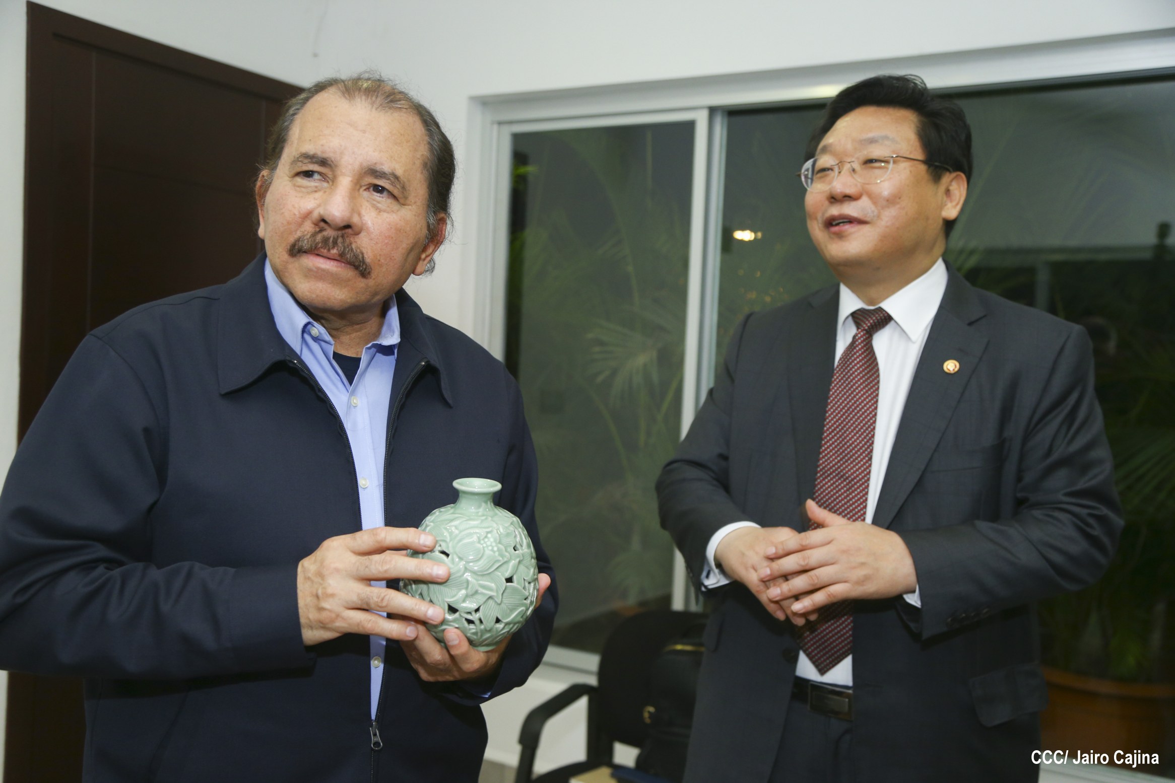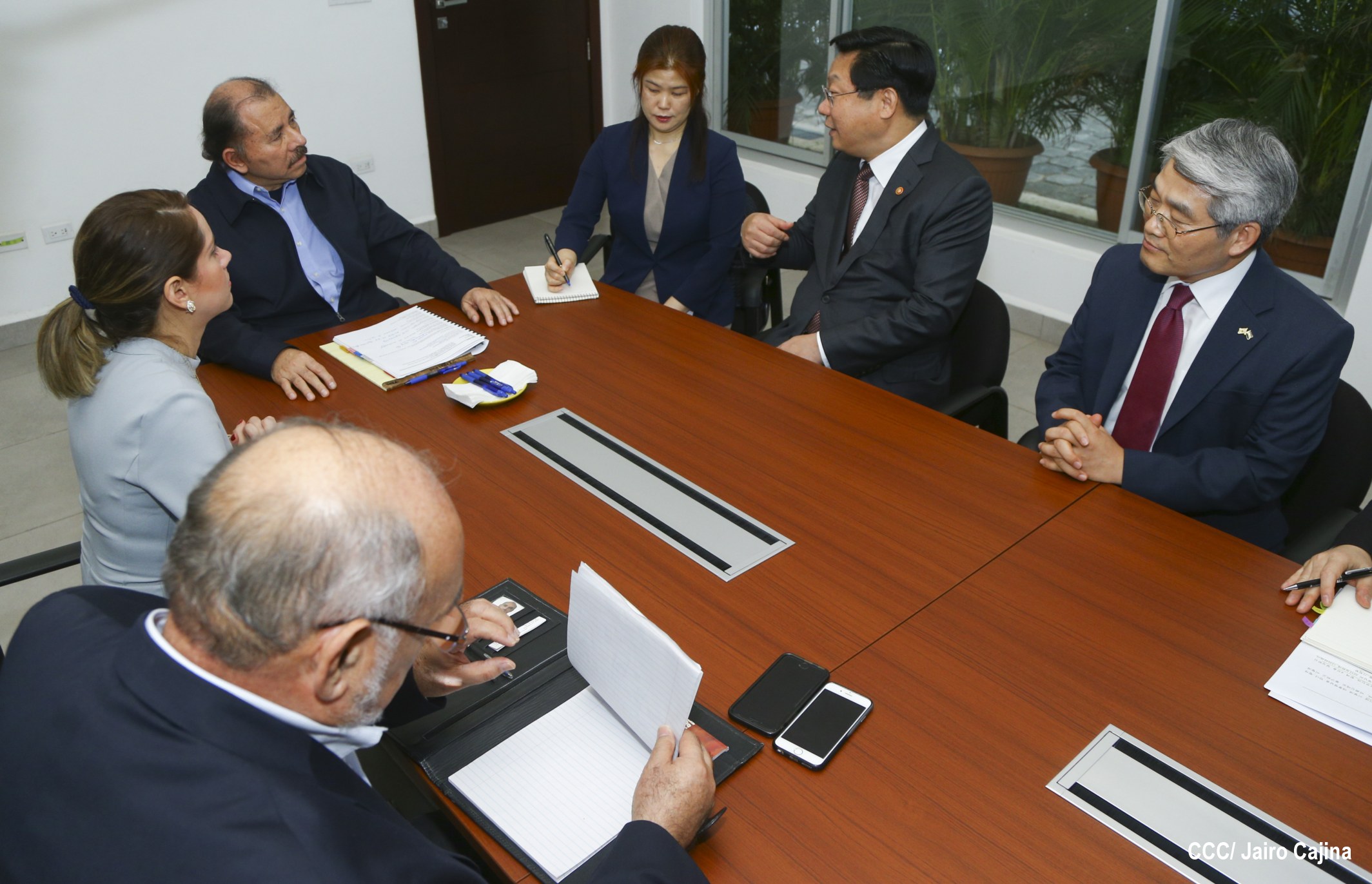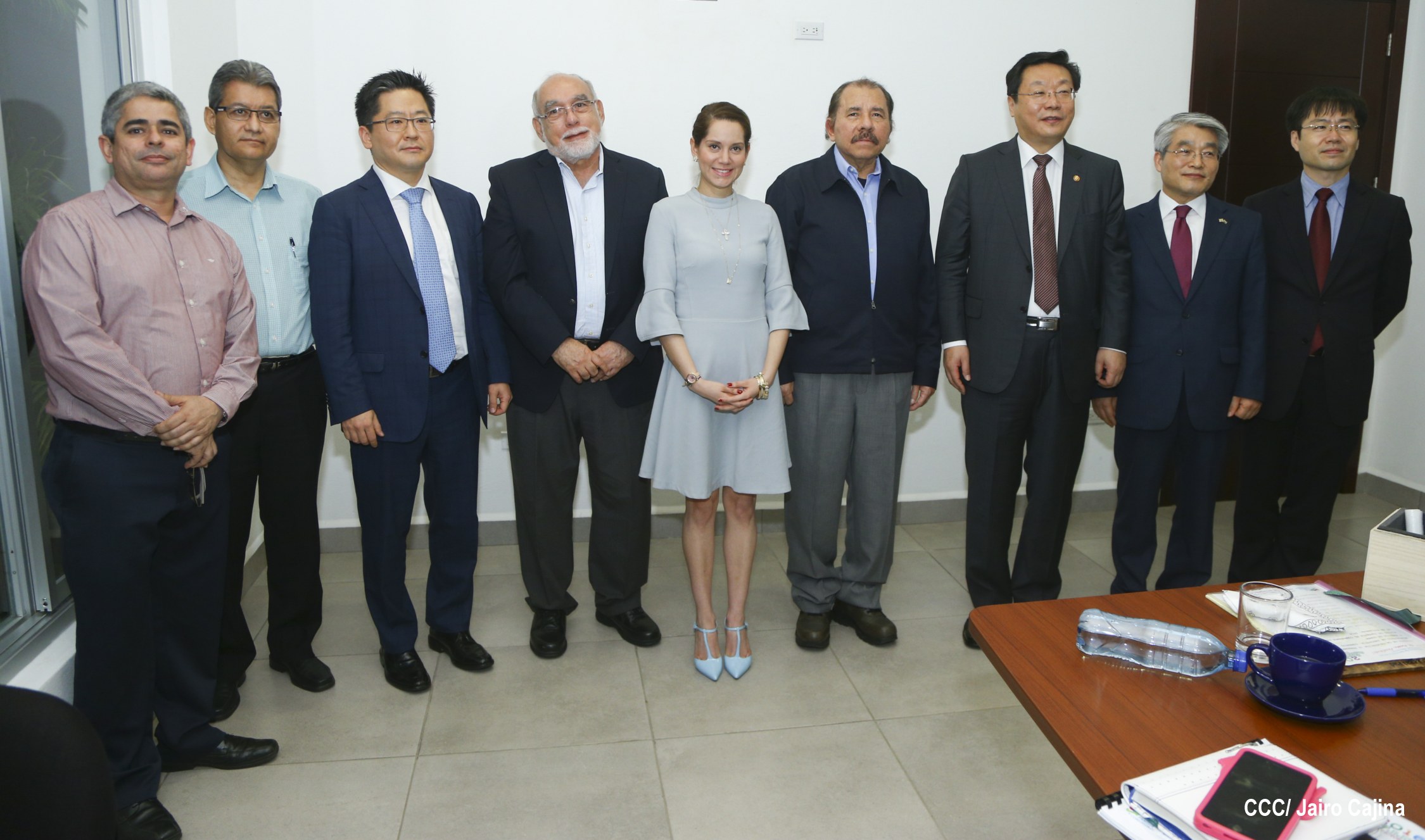 El Presidente de la República, Comandante Daniel Ortega Saavedra, se reunió con el Ministro de Comercio, Industria y Energía de Corea, señor Hyunghwan JOO, quien se encuentra en Nicaragua para anunciar la conclusión de las negociaciones del Tratado de Libre Comercio (TLC) entre Centroamérica y la República de Corea.