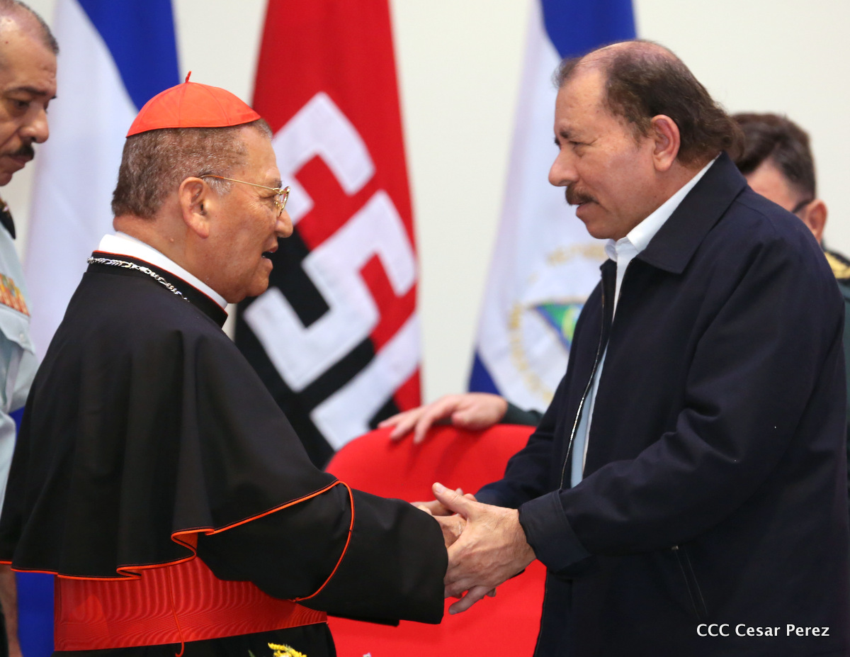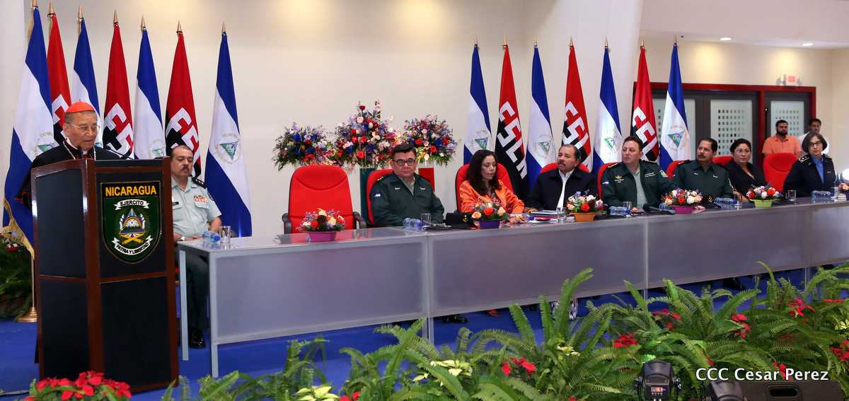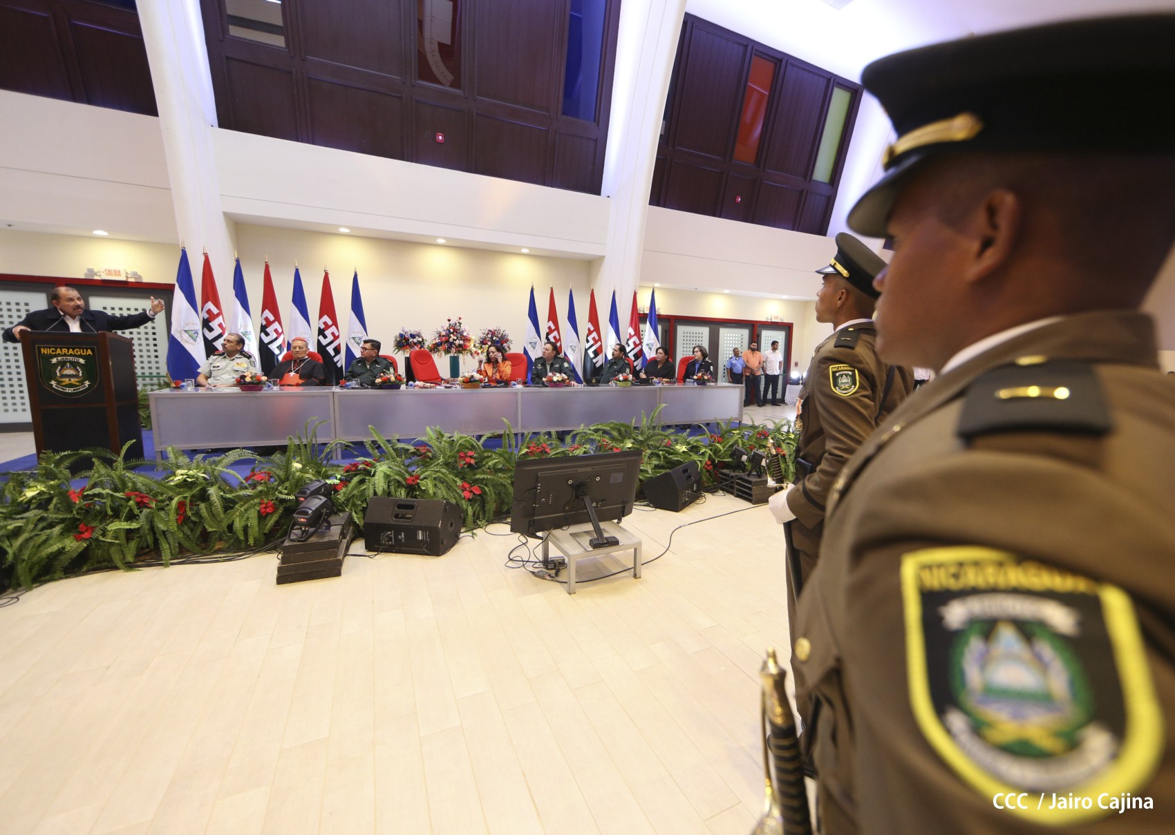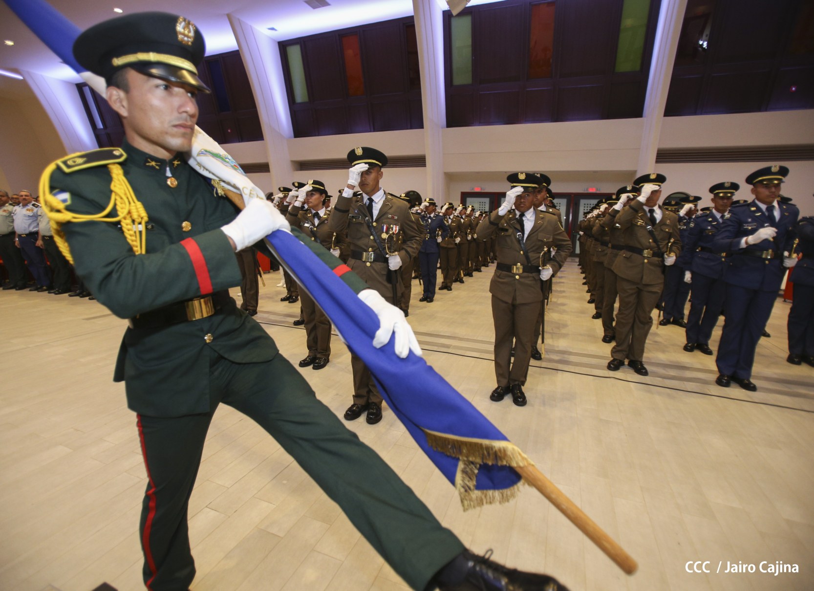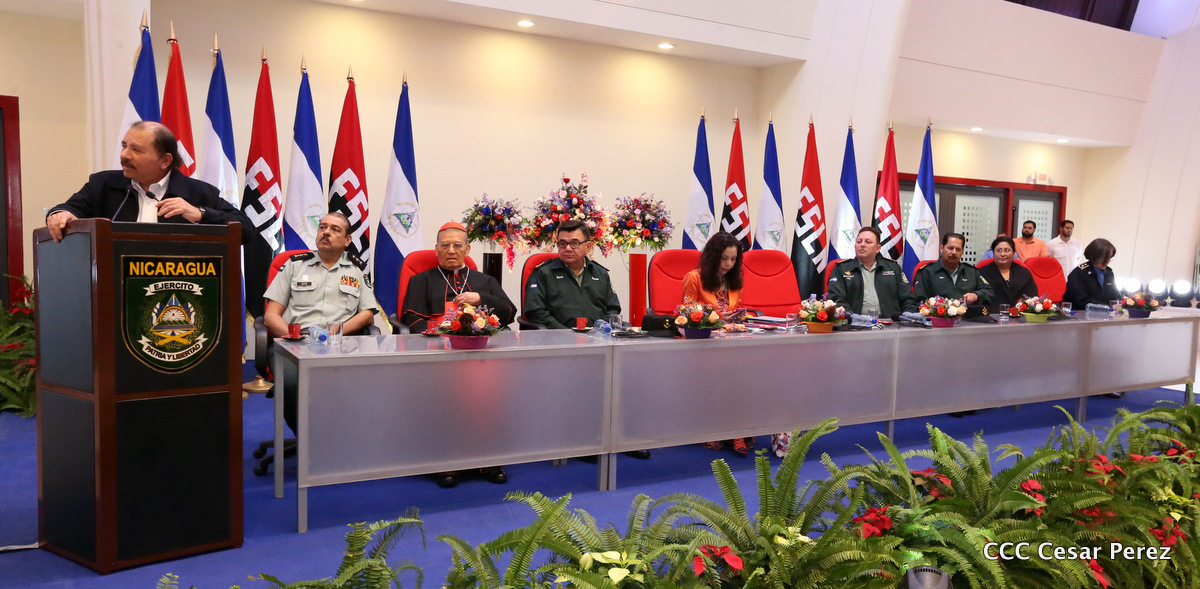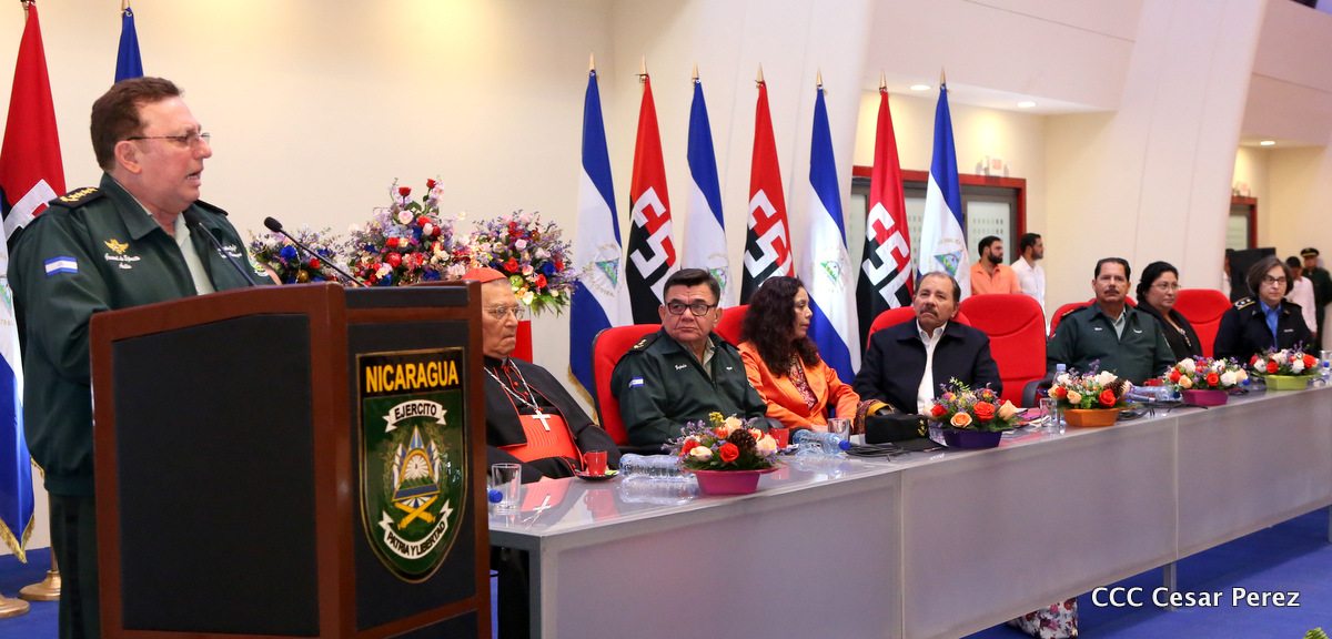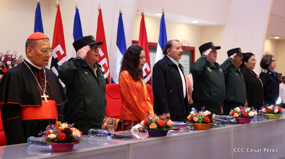 El Presidente de la República, Comandante Daniel Ortega Saavedra, y la Coordinadora del Consejo de Comunicación y Ciudadanía, Compañera Rosario Murillo, presidieron este lunes la XXI Graduación del Curso Regular de Damas y Caballeros Cadetes del Ejército de Nicaragua “Héroe Nacional Rubén Darío”.