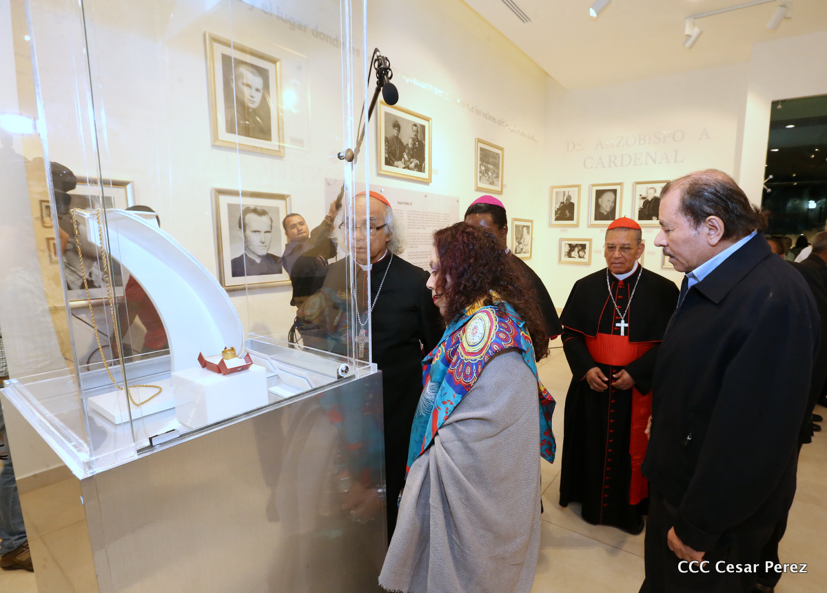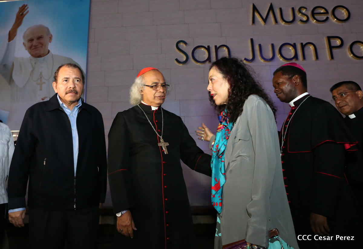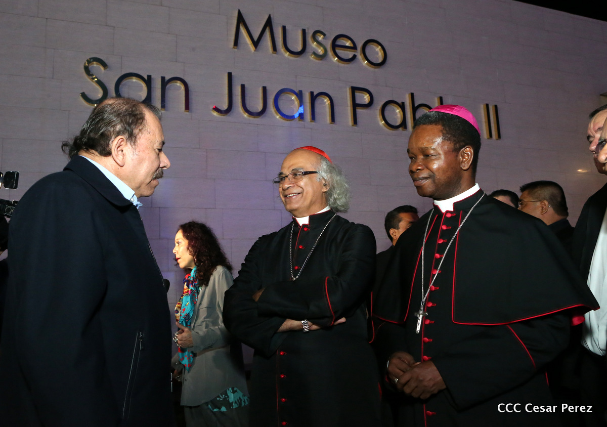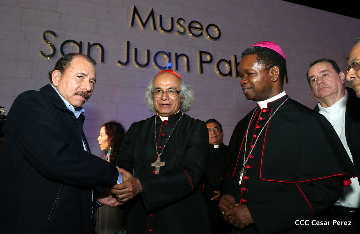 El Presidente Daniel Ortega y la Compañera Rosario Murillo, junto al Cardenal Miguel Obando y Bravo, el Cardenal Leopoldo Brenes y el Nuncio Fortunatus Nwachukwu, inauguraron el Museo San Juan Pablo II.