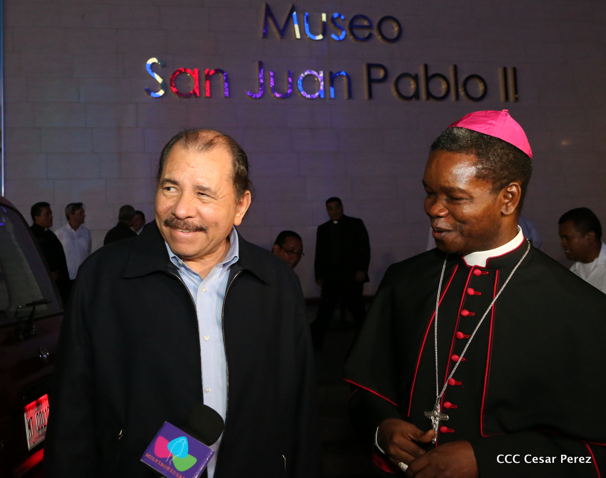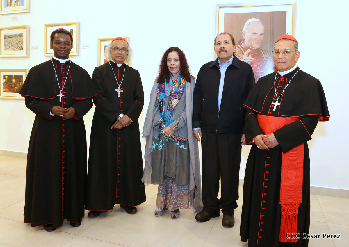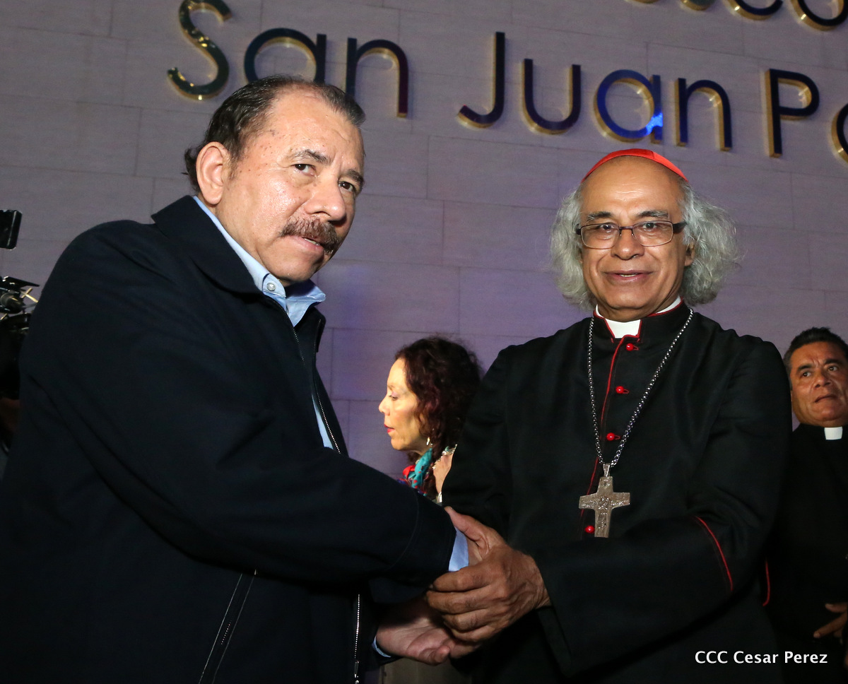 El Presidente Daniel Ortega y la Compañera Rosario Murillo, junto al Cardenal Miguel Obando y Bravo, el Cardenal Leopoldo Brenes y el Nuncio Fortunatus Nwachukwu, inauguraron el Museo San Juan Pablo II.