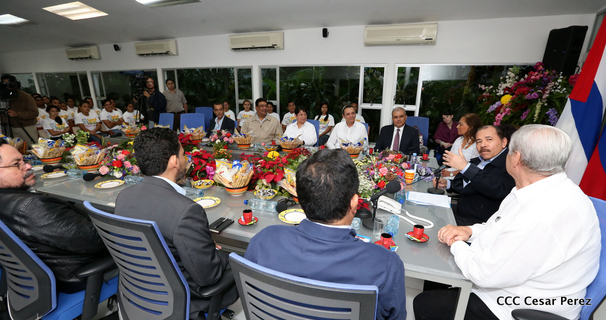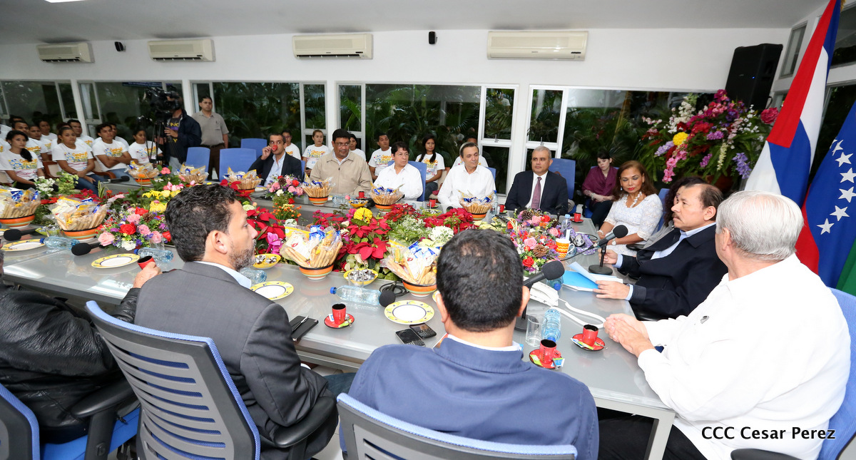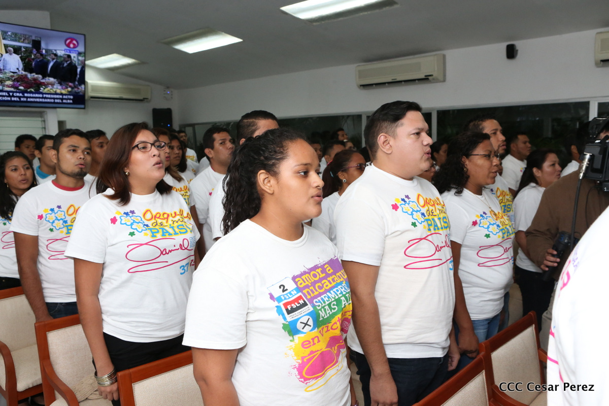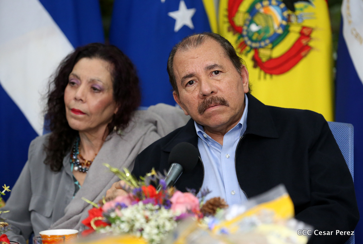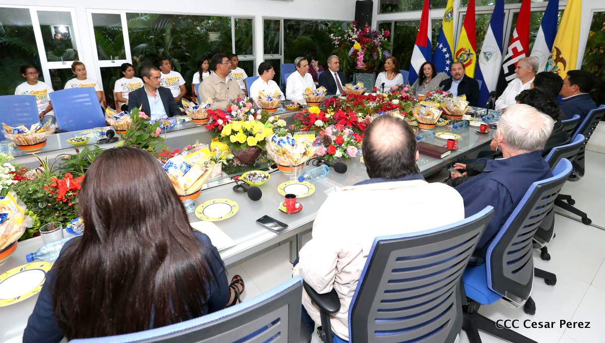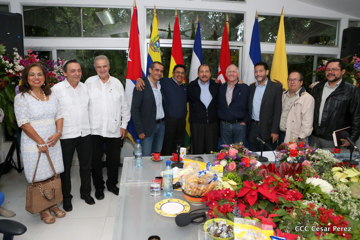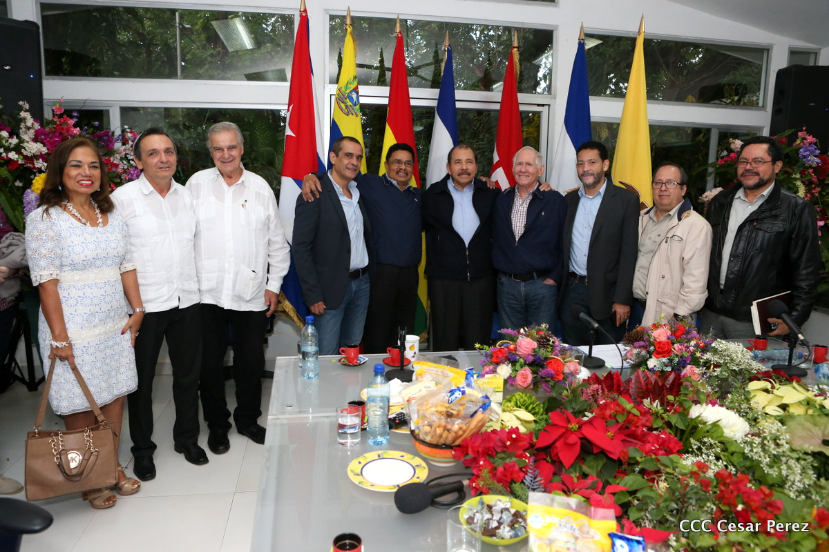 El Presidente de Nicaragua, Comanante Daniel Ortega, y la Compañera Rosario Murillo, celebran junto a embajadores de los países miembros del ALBA-TCP, el XII Aniversario de la Alianza Bolivariana para los Pueblos de Nuestra América.